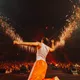 Fotografen uttalar sig: "Bolaget på Stockholms stadion. Sista stoppet på en lång turné avslutades här, och när sista låten gick igång och fyrverkerierna började skjutas så blev det känslostorm på scen. Det var bara att åka med och hoppas att alla känslor fastnade i kameran."
