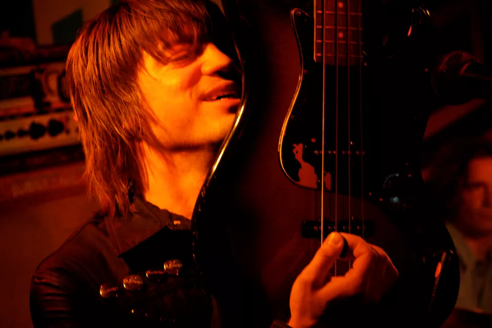 På den lilla scenen, där ålderdomliga, slitna förstärkare trängts ihop med trummor, kablar och stativ, kommer en småleende person ut.