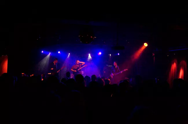 När jag kliver in på Strand är det första gången jag ska uppleva Jönköpings-sönerna live. Jag har inga förväntningar och undrar mest hur ett så ljud-beroende band skall klara av Strands lite burkiga och fyrkantiga ljud. Men exakt på klockslaget kliver dom upp på den lilla scenen framför en ung och