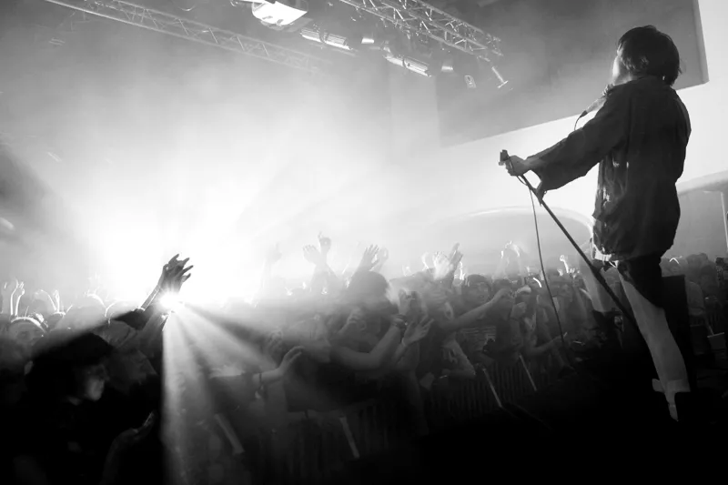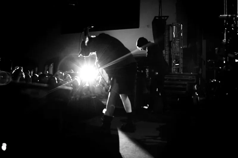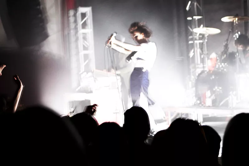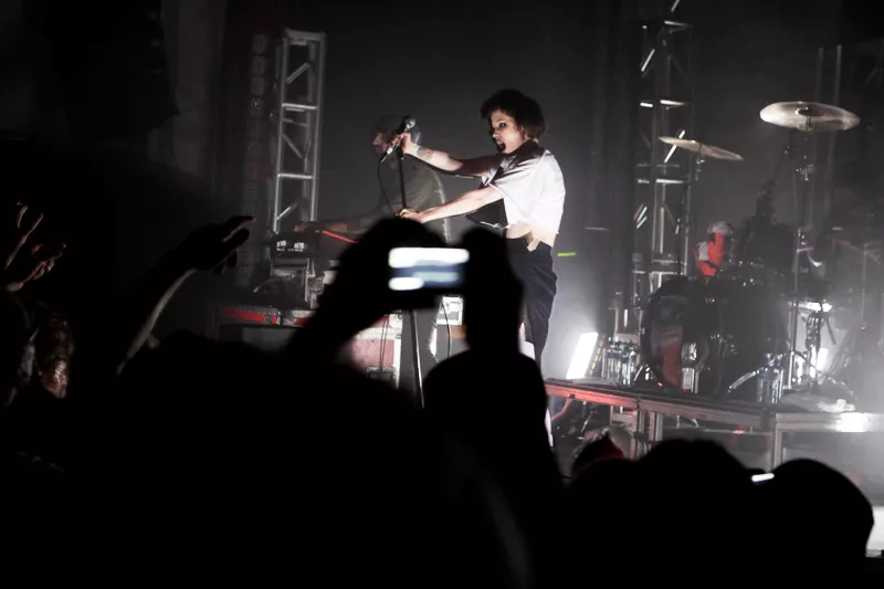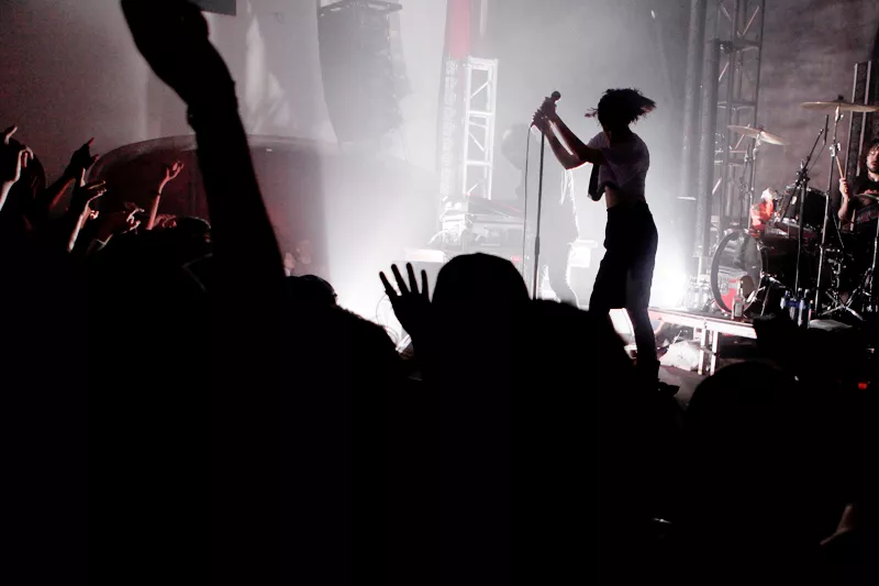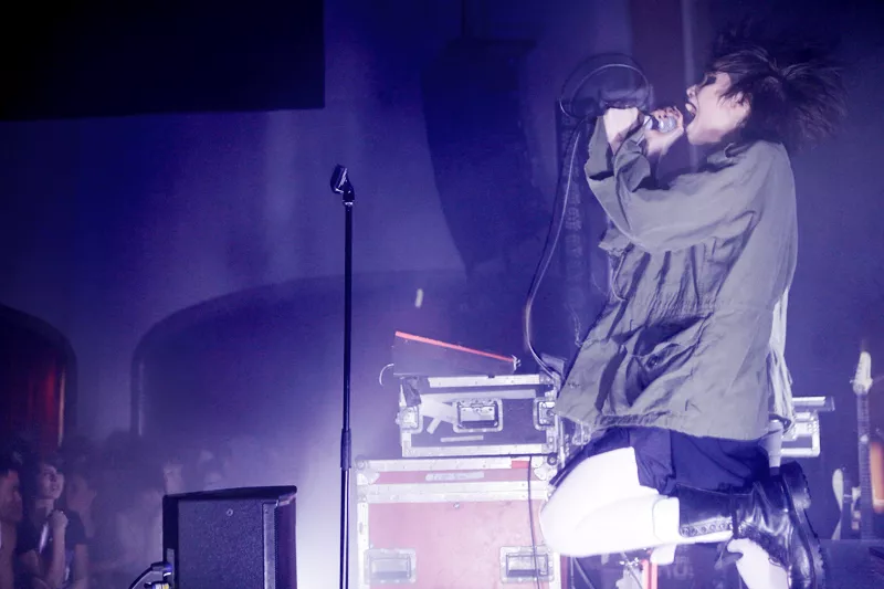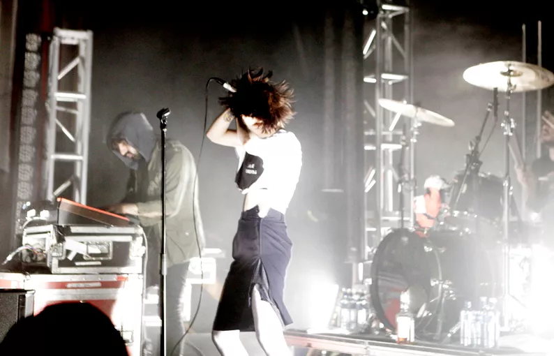 Crystal Castles spelar stenhårt, Alice Glass dansar sig galen till strobljus, publiken dansar intensivt på Debaser Medis.