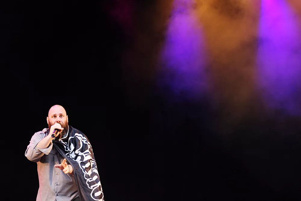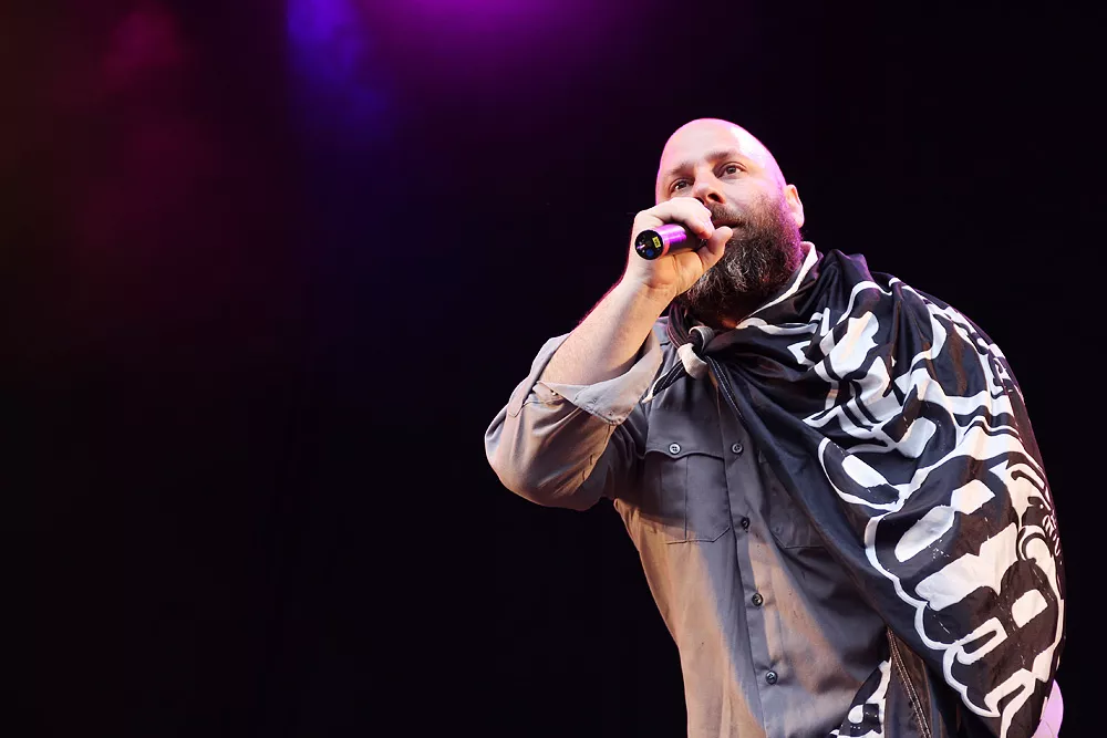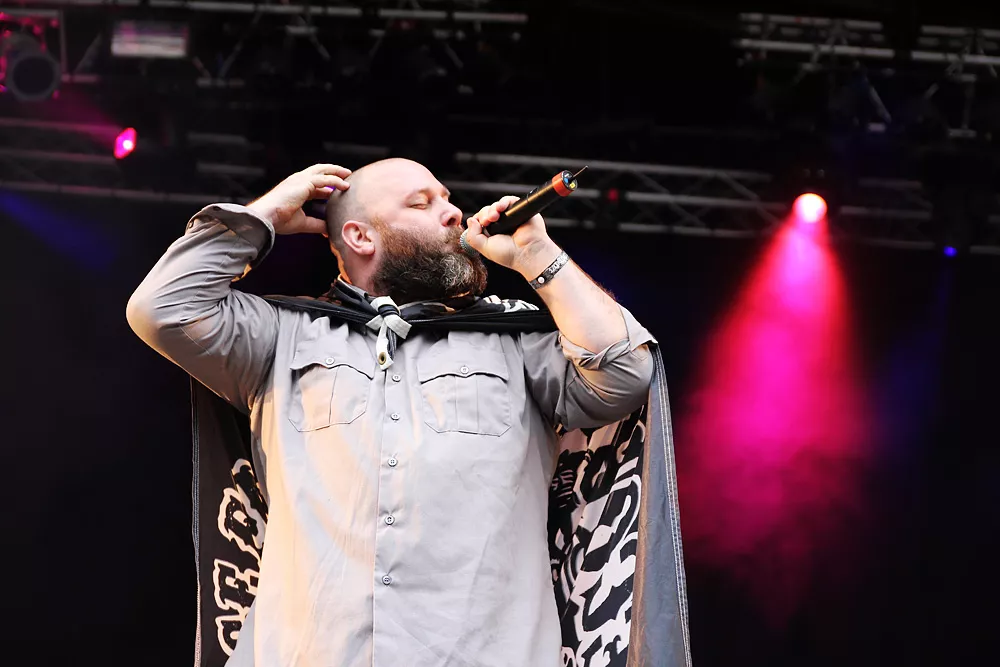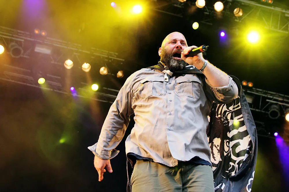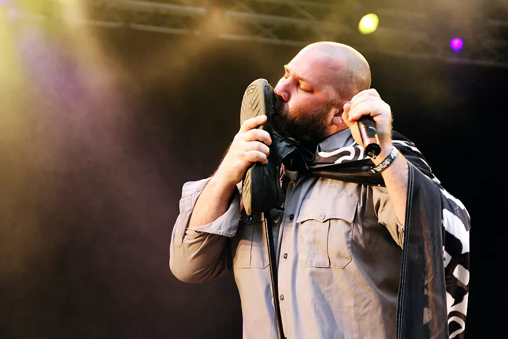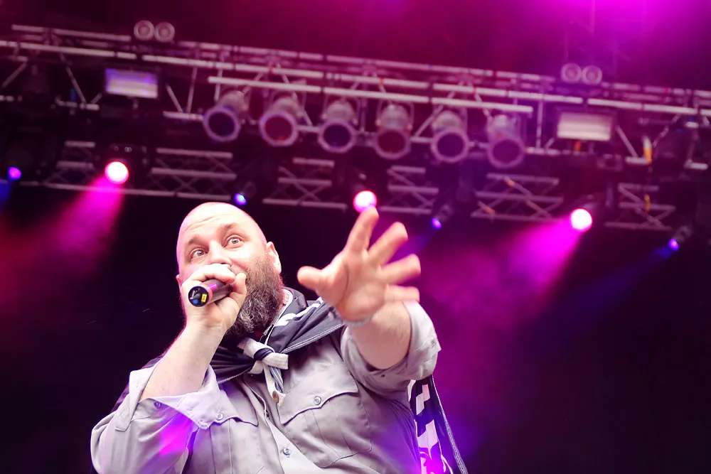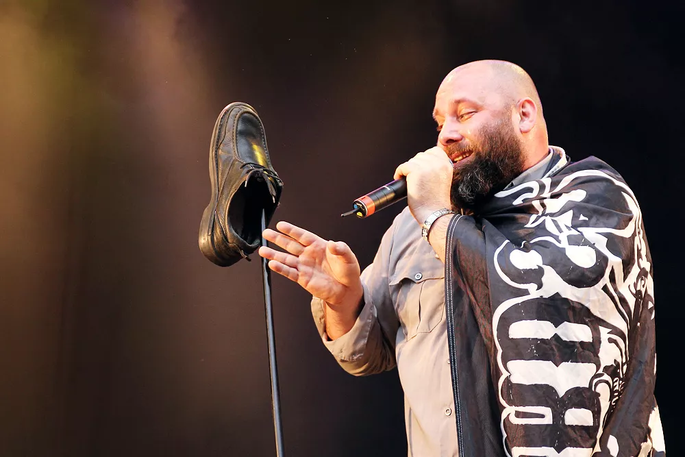 Så inleder Sage Francis sin konsert i Borlänge. Han har i allmänhet väldigt mycket att säga. Engagerad och politisk, en åsiktsmaskin som lika gärna skulle kunna bokas i samma syfte som Jesse Jackson och Bob Geldof. Så är han också en av de mest tankeväckande av aktuella hiphopartister. Smatterbandssnabb