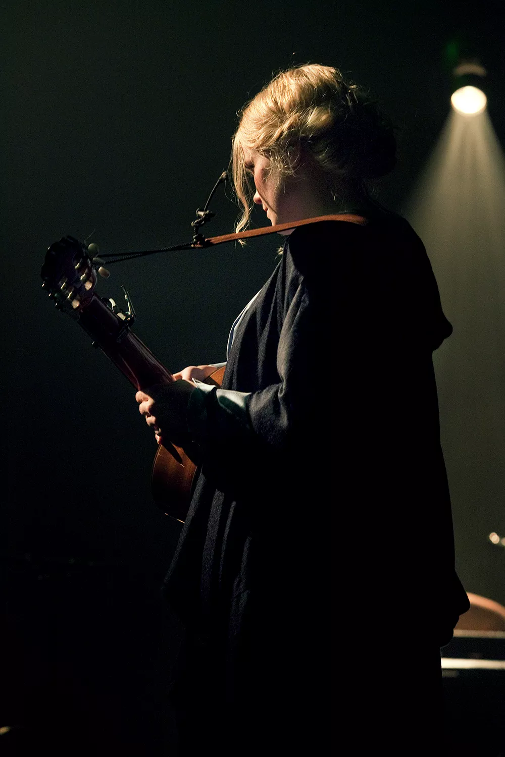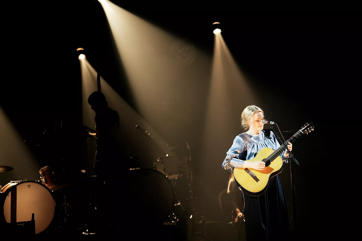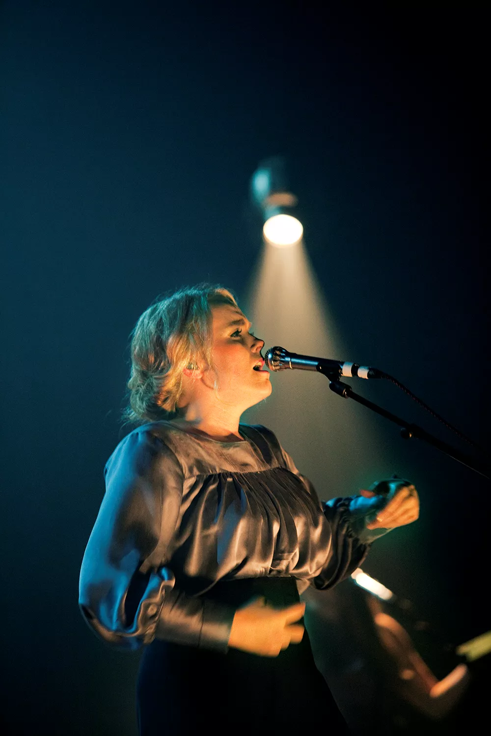 Ane Brun ser nästan ut som en kvinna ur en flamländsk oljemålning från 1600-talet, när hon vandrar in på scen, i en ljusblå, puffig sidenblus och en svart schal över håret, till de suggestiva trummorna i inledande These Days. Det är mäktigt och teatraliskt, nästan sakralt mässande.