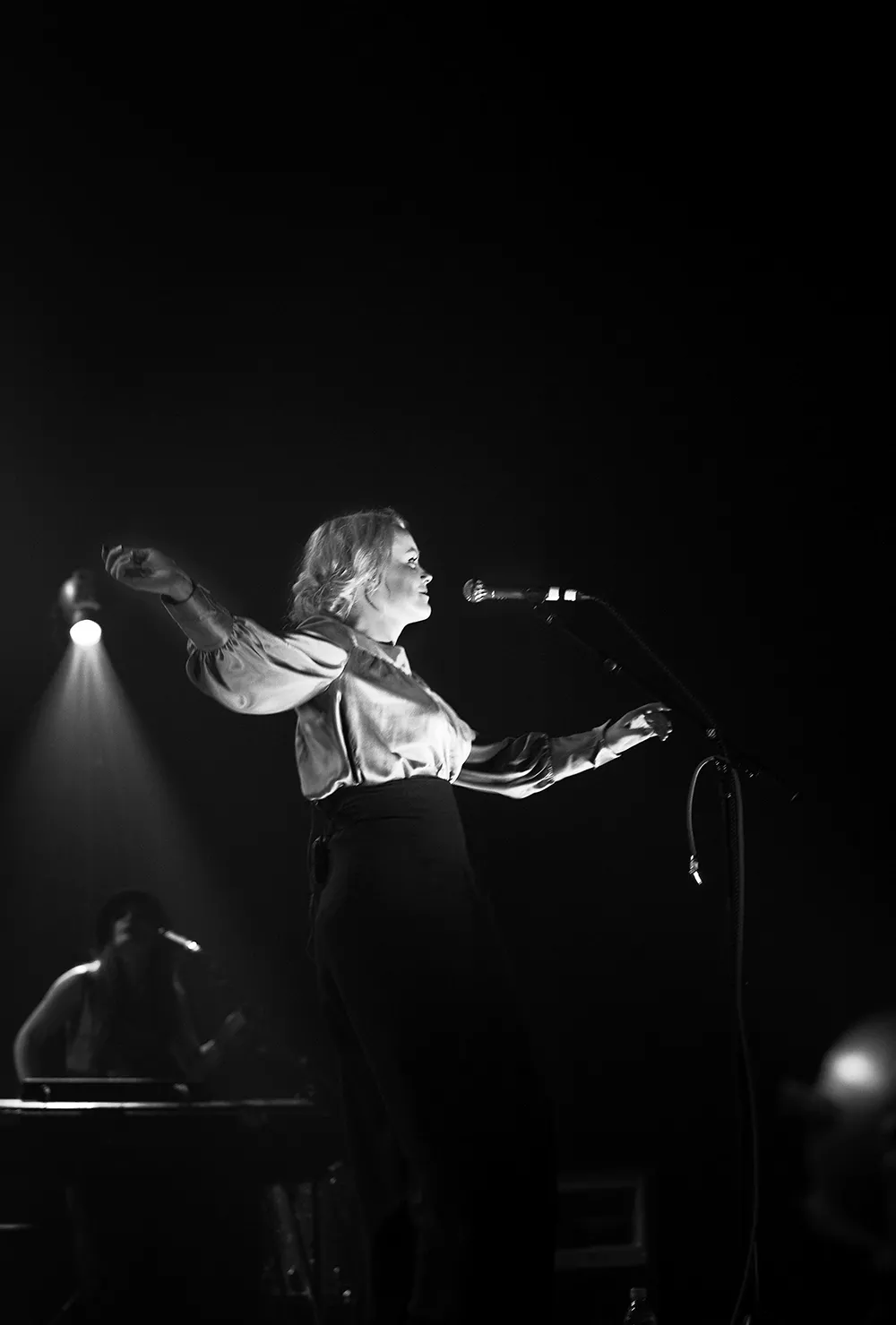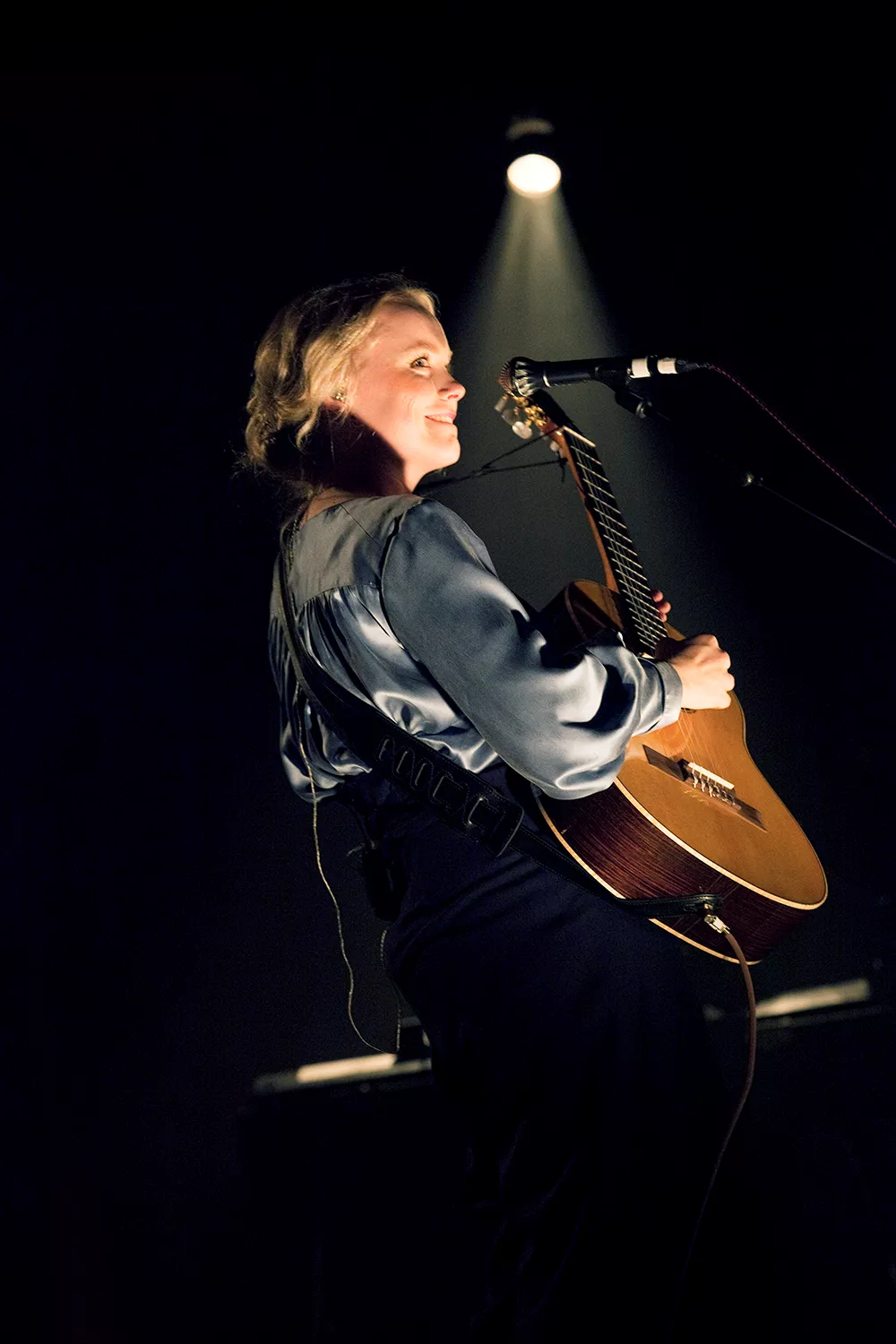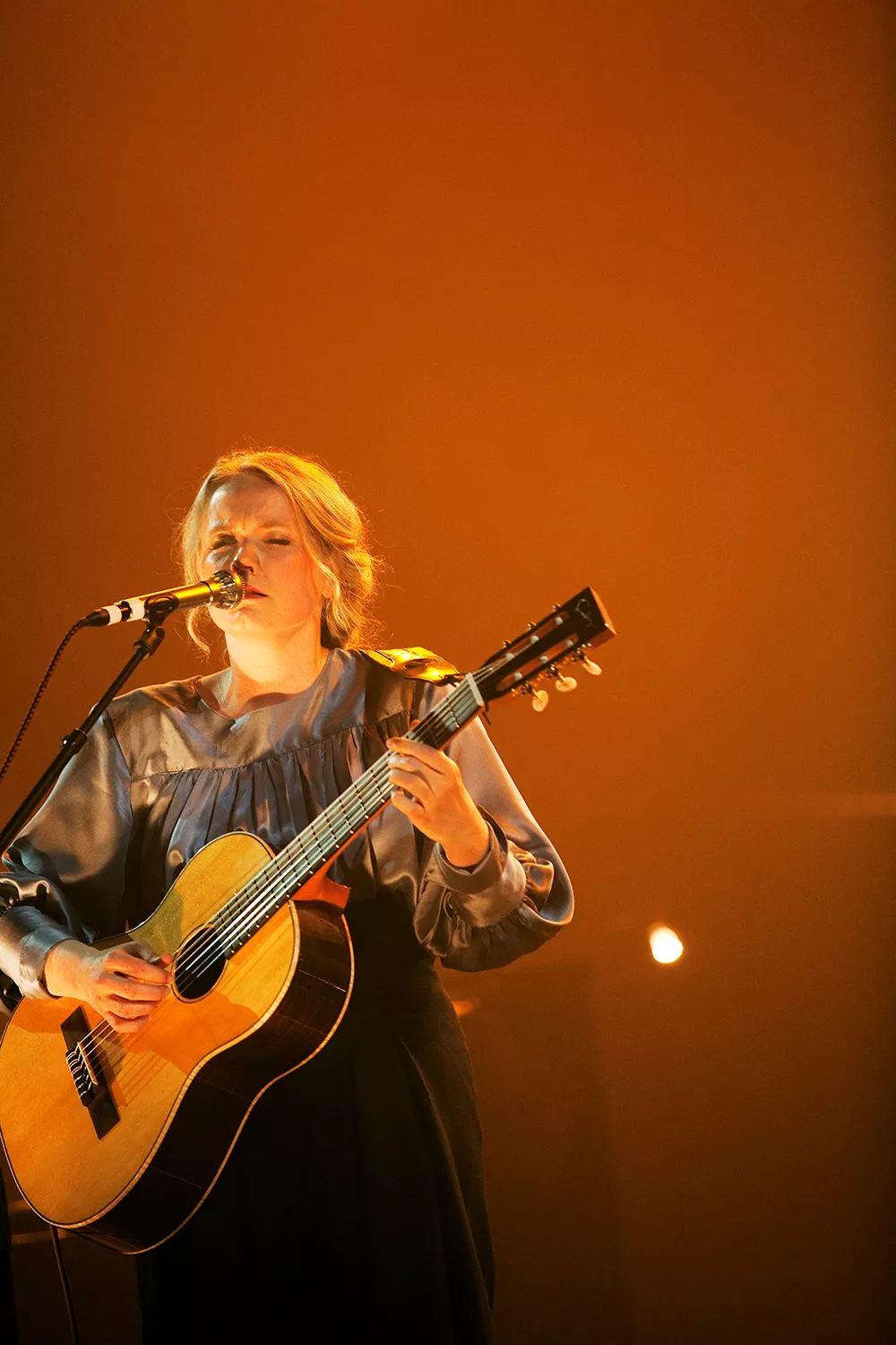 Ane Brun ser nästan ut som en kvinna ur en flamländsk oljemålning från 1600-talet, när hon vandrar in på scen, i en ljusblå, puffig sidenblus och en svart schal över håret, till de suggestiva trummorna i inledande These Days. Det är mäktigt och teatraliskt, nästan sakralt mässande.