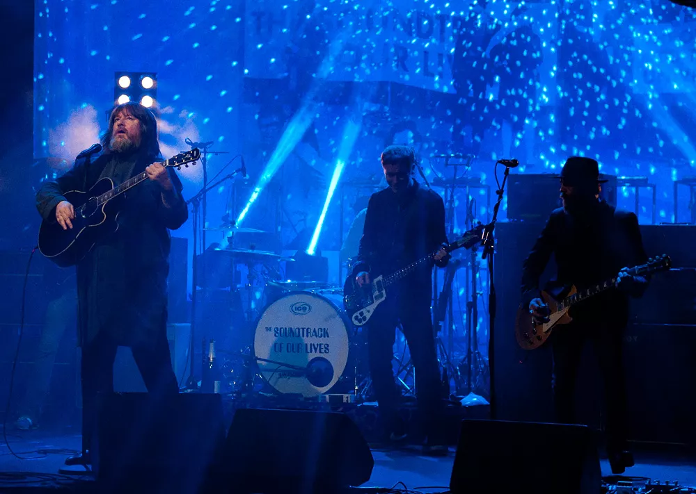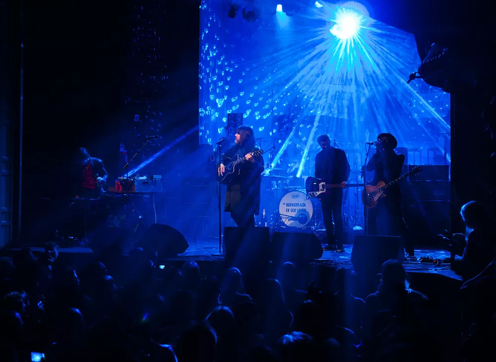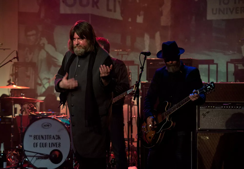 Här, i en lokal som liknar en gammal vacker biosalong. Som med sin grandiosa arkitektur i lila och guld osar av flärd och överklass. Det är alltså här The Soundtrack Of Our Lives går i graven.