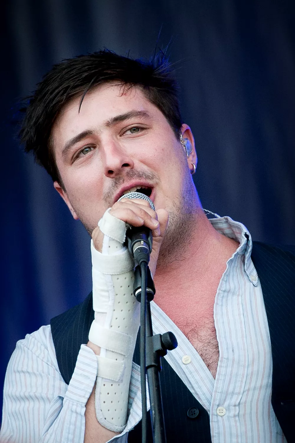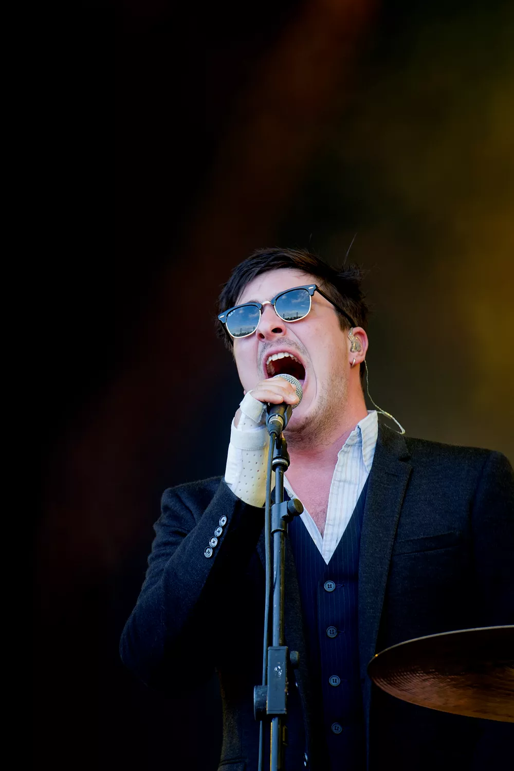 Mysfaktorn är på topp när Mumford & Sons får de första värmande solstrålarna med sig efter regnet den tidiga torsdagskvällen på Peace & Love. Efter att ha tvingats ställa in sin spelning på Hultsfred känns de verkligen uppriktigt jätteglada över att vara här. Sångaren Marcus liksom ler konstant
