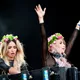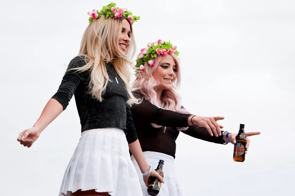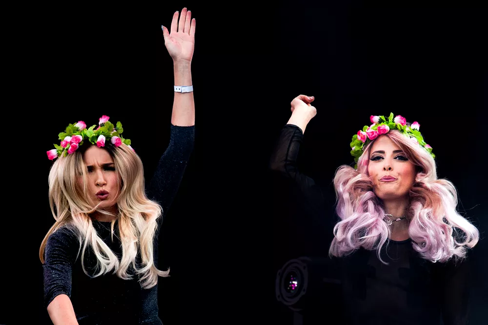 De vet verkligen hur de ska göra för att kräva sin omgivnings uppmärksamhet, duon som kallar sig för Rebecca & Fiona. Uppgiften att väcka en minst sagt sömnig festivalpublik mitt på fredagen är inte den enklaste, speciellt inte när duon inte direkt kan fylla scenen varken själva eller