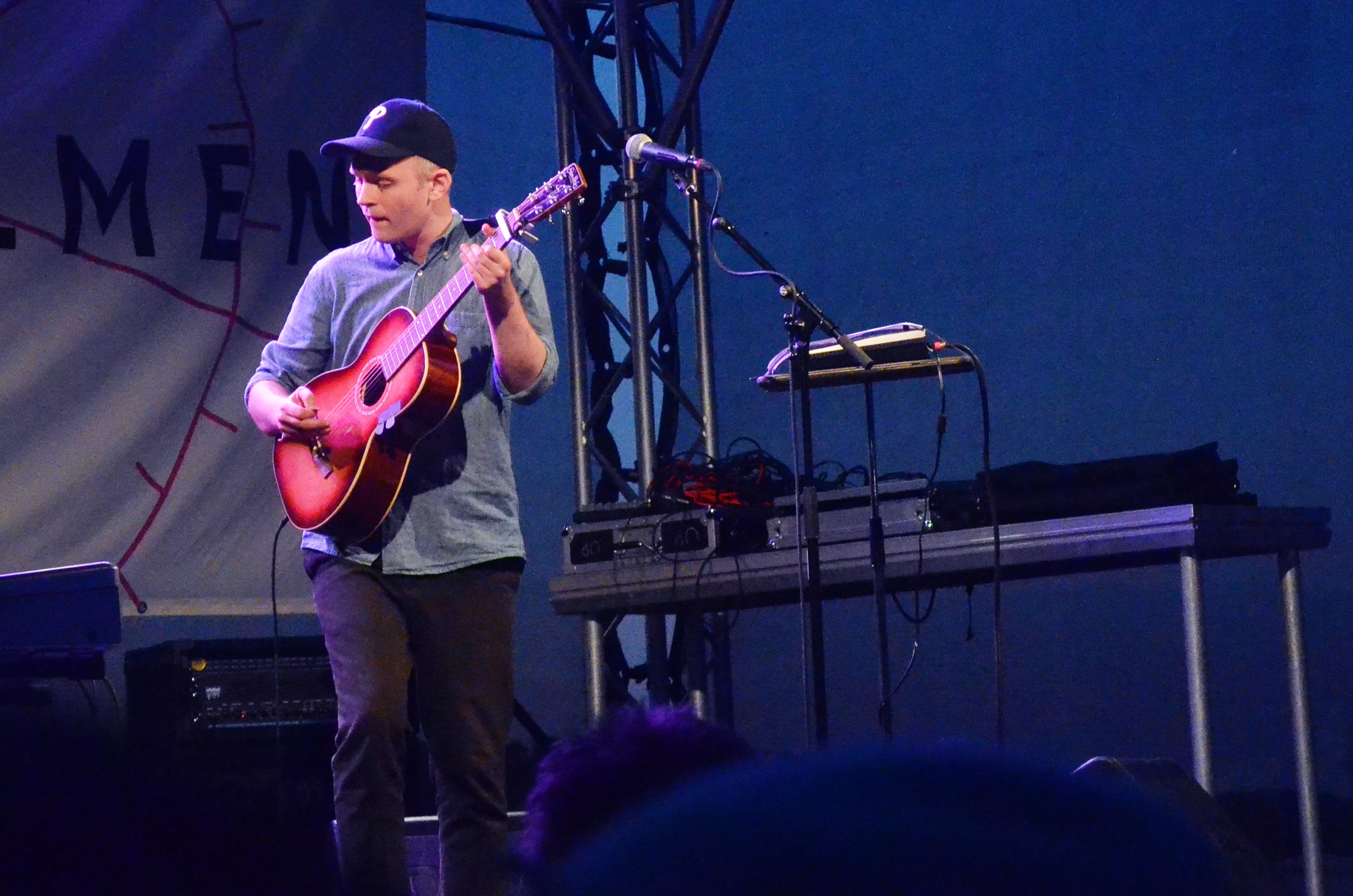 Precis som Säkert! gjorde några timmar tidigare kliver Jens Lekman in ensam på scenen och plockar upp en akustisk gitarr. Men den sättningen ändras under kvällen när Göteborgscroonern vinkar in både trummis, pianist, basist och violinist.