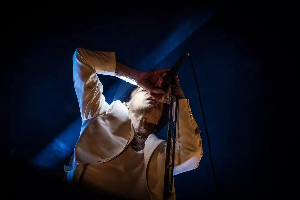 Öppningen är rundgång. Pelle Ossler tittar på sin gitarr tills den tjuter, ljuset är som vanligt dämpat, bandet smyger så sakta igång låten och Thåström själv kommer in, kvällen till ära i helvitt. Det som är det fina med Thåström numera är att hans konstata omarrangerande av gamla låtar gör att man