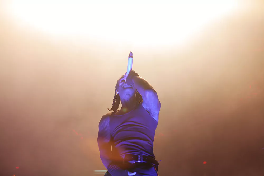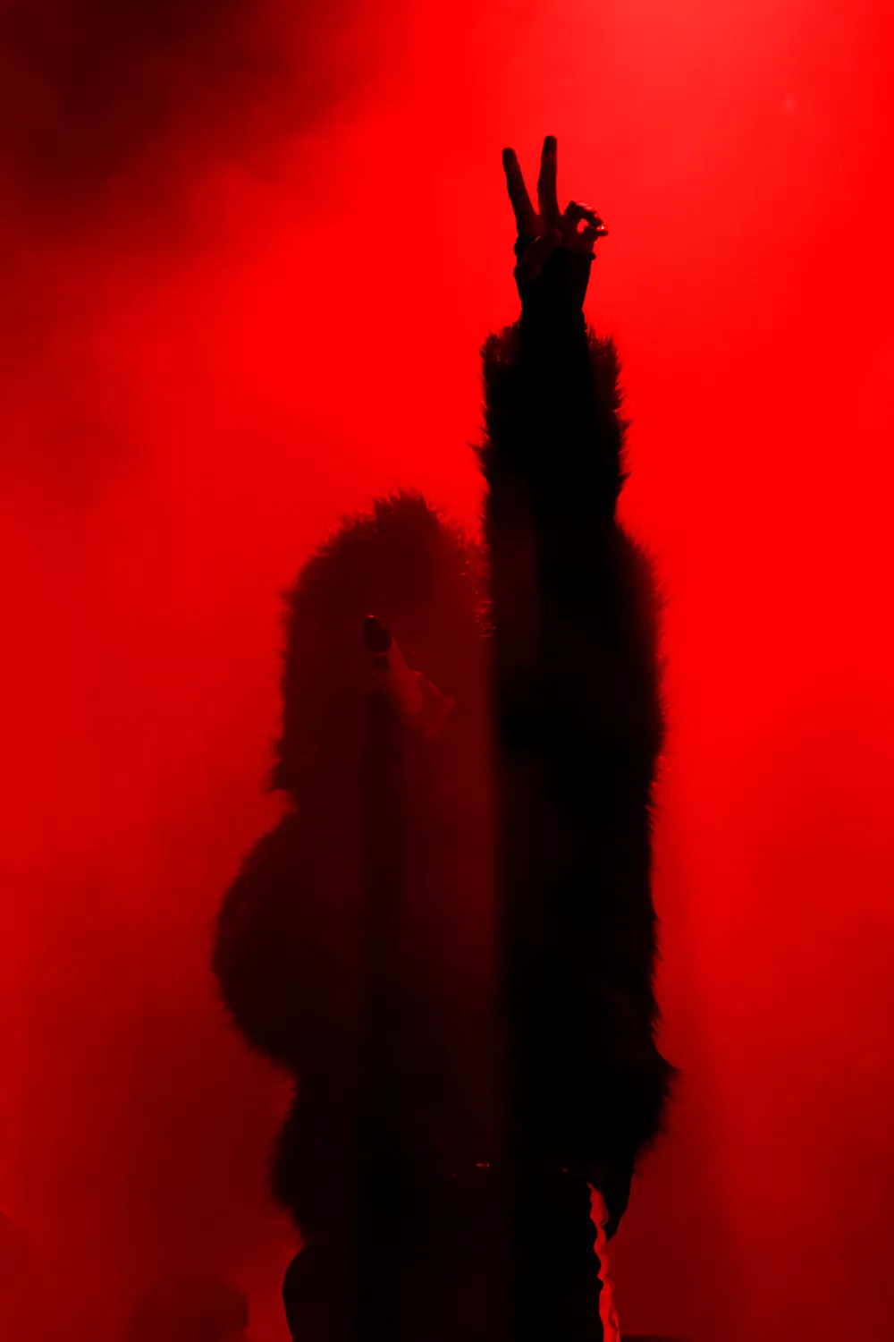 Tusentals händer sträcker sig mot skyn i extas.