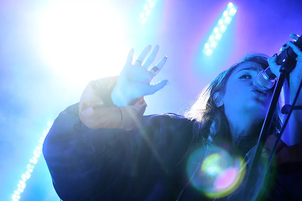 Publiken som står och gömmer sig från det mulna måndagsvädret under taket till den lilla scenen på Gröna Lund består nästan uteslutande av tjejer i tonåren. När scenen dränks i ett starkt blått ljus och fylls av rök från den nytända rökmaskinen så applåderar den unga publiken medan Alina Devecerski