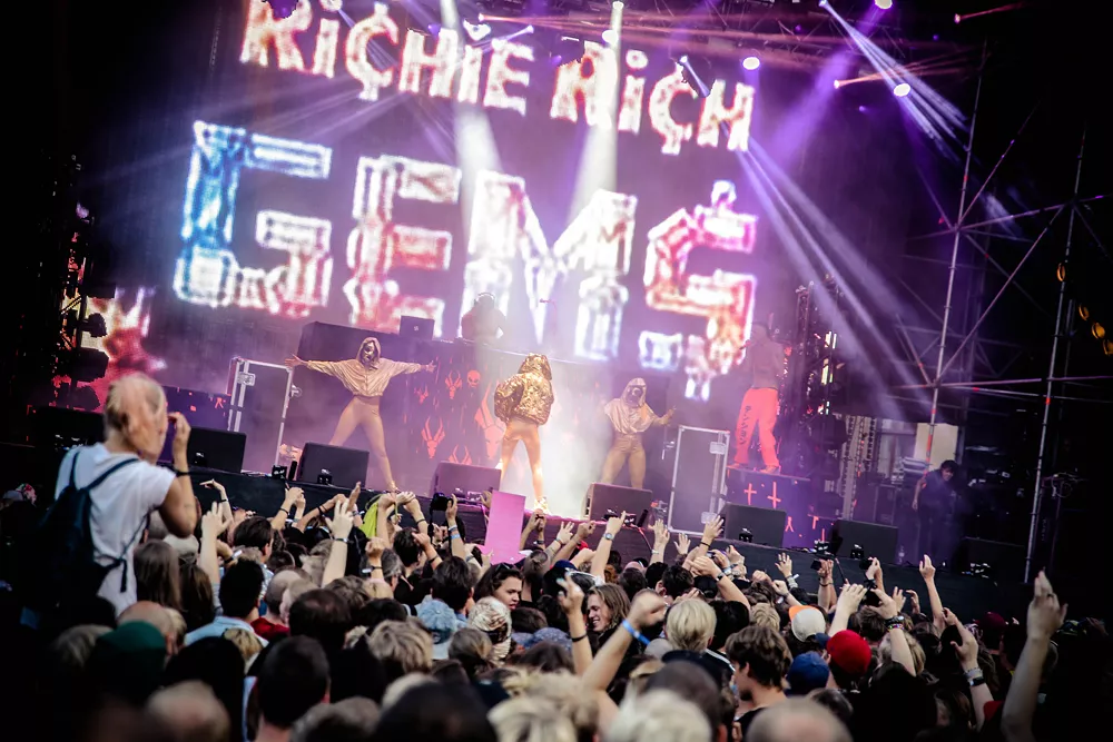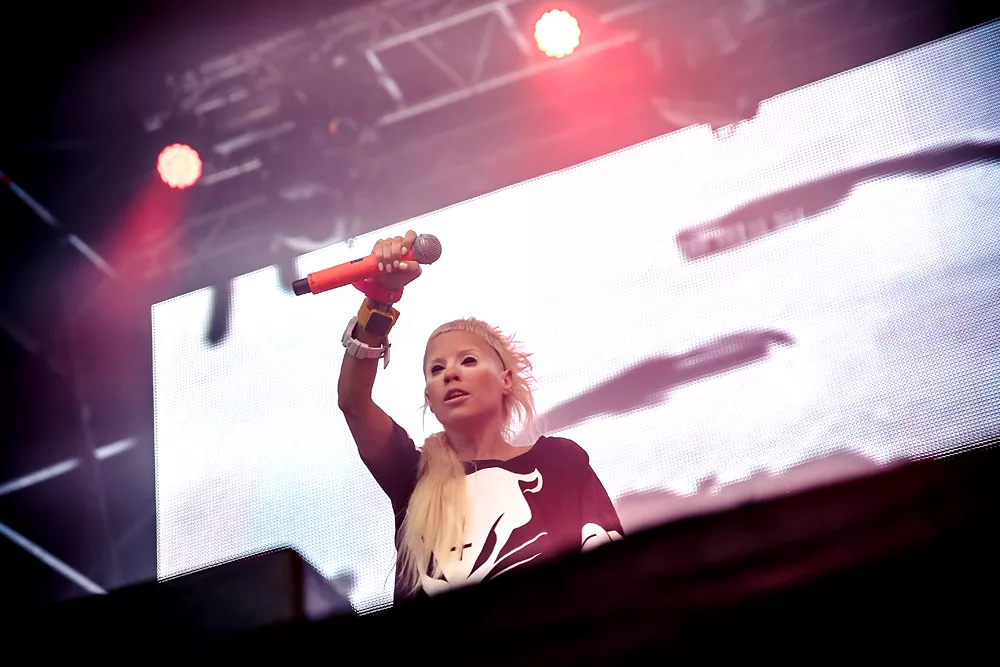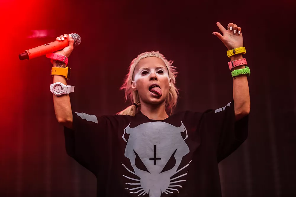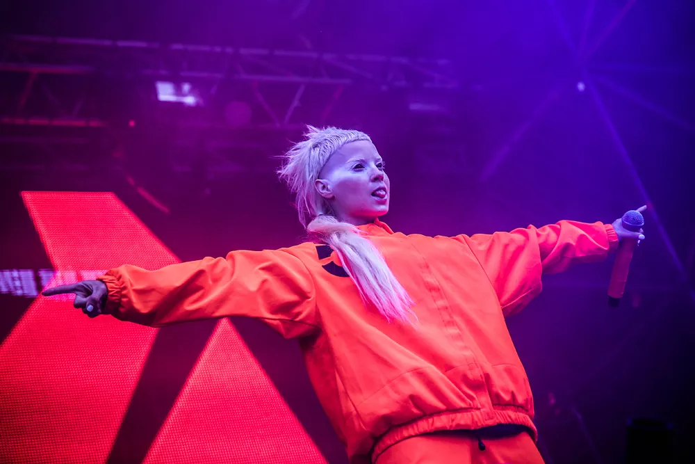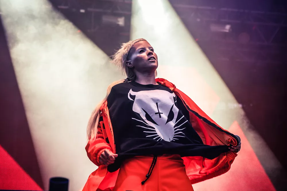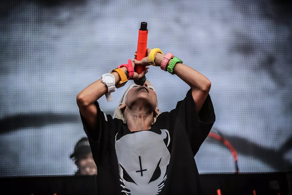 Dans Dakars intressantaste bokning är utan tvekan sydafrikanska EDM-rapparna Die Antwoord. Under dagen har jag redan hunnit räkna tre stycken Yo-Landi Vi$$er look-a-likes och oräkneligt antal t-shirts. Det märks också att den oortodoxa trion av Ninja, Yo-Landi och DJ Hi-Tek är vad många betalat
