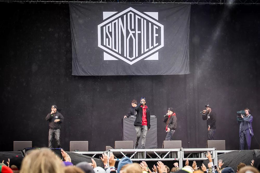 Ison & Fille har sen långt tillbaka hållit ihop i både ur och skur, vilket de bokstavligen gör även under Bråvallas sista festivaldag. Startfältet med låtar såsom På Jakt Efter Lycka, Ikväll Är Vi Kungar och Sena Nätter är både stabilt och medryckande. Rapslingorna är kvicka