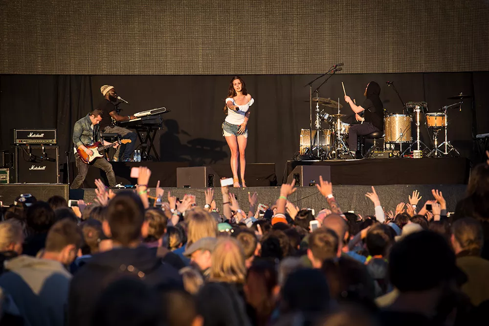 Den gyllene timmen har slagit när Lana Del Rey kliver upp på scen. Hon inleder det timmes långa setet med Cola från debutplattan Born To Die. Från första låten till att de sista tonerna tonar ut på Bråvalla lever hon upp till de vackert skulpturerade låtarna som pryder hennes två