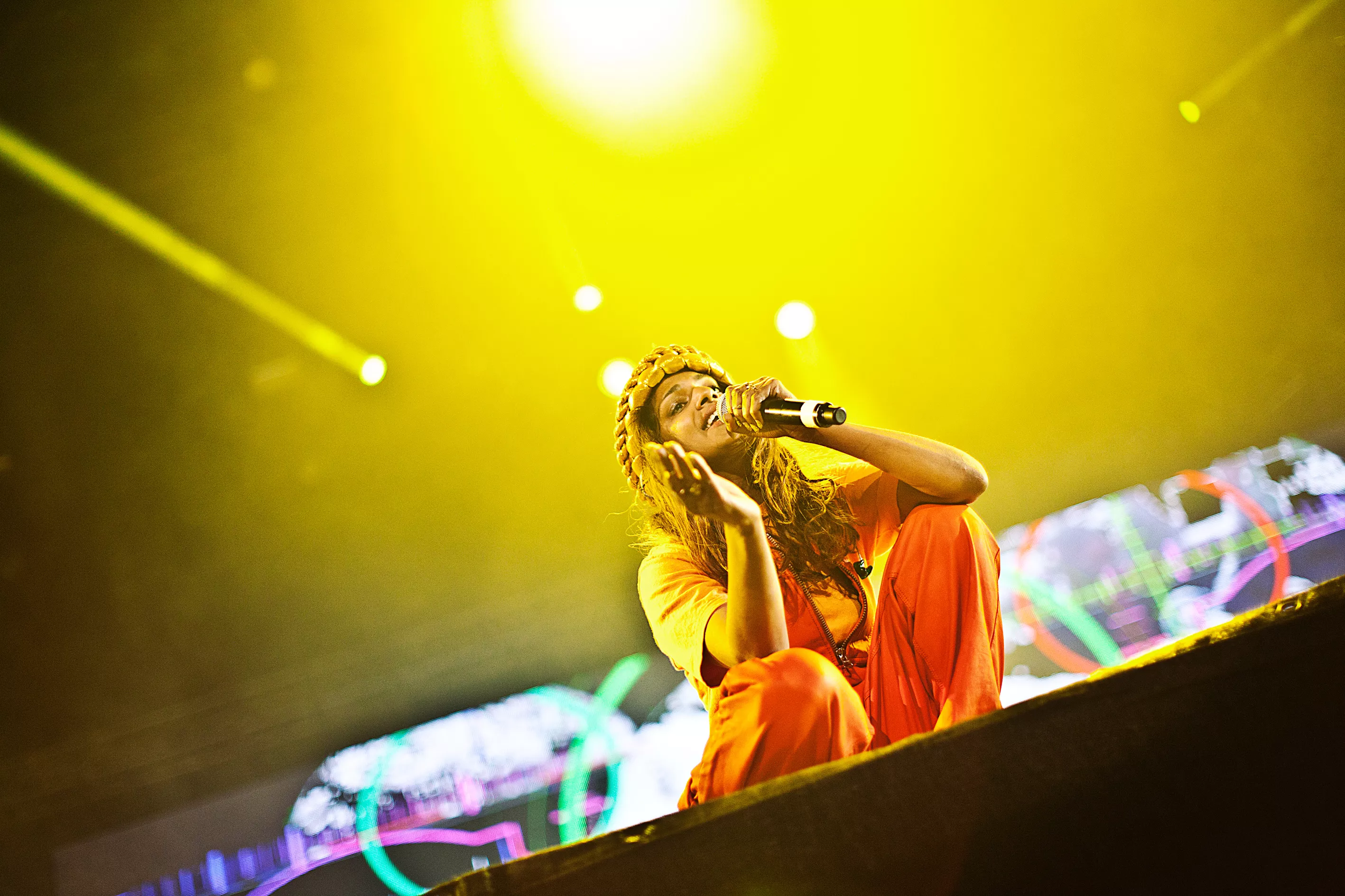 M.I.A. bjuder på en psykedelisk och surrealistisk show under de senare timmarna på festivalens första dag. Det är technodrypande slingor som pulserar ut över området och rapparen får tillsammans med sitt crew scenen att vibrera. Det är en kaxig Matangi som blickar ut över