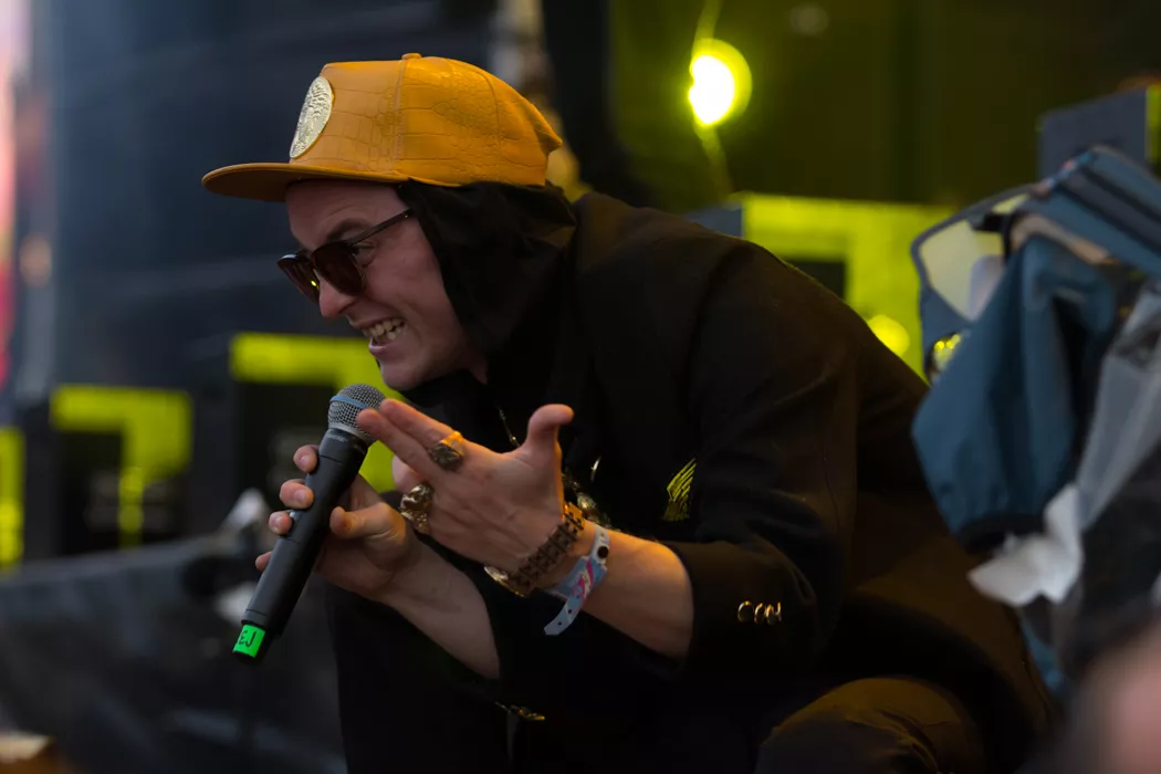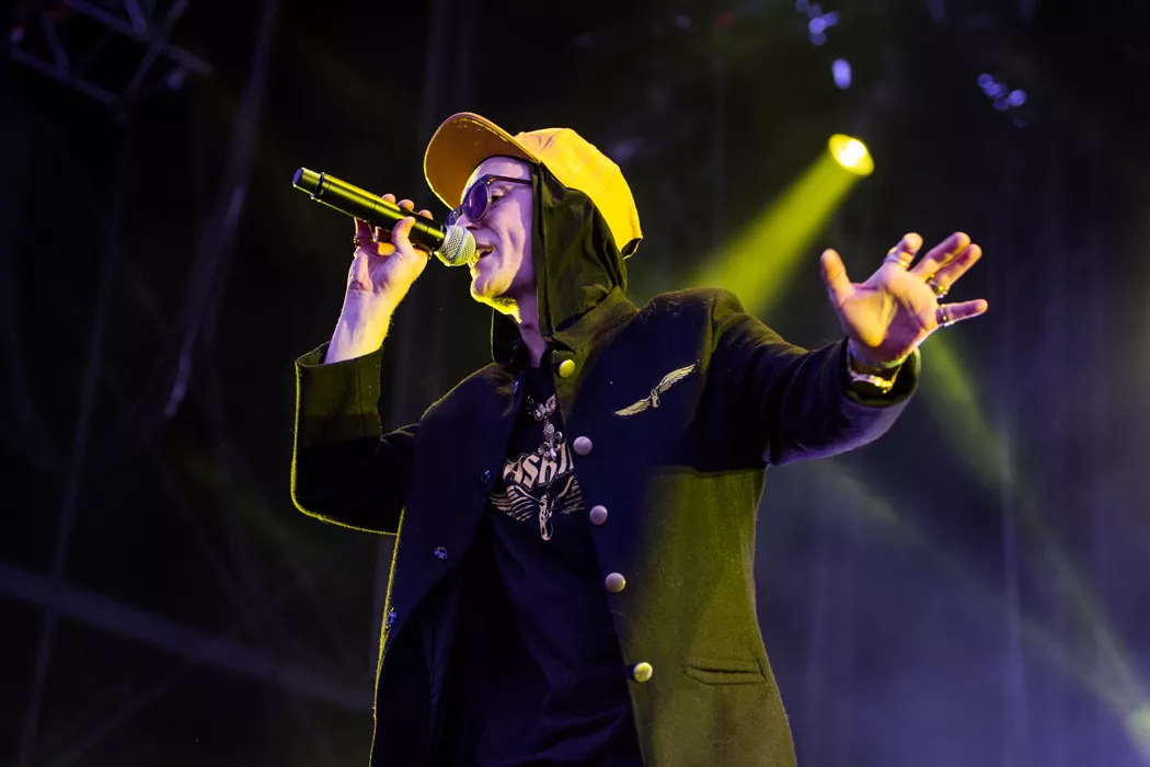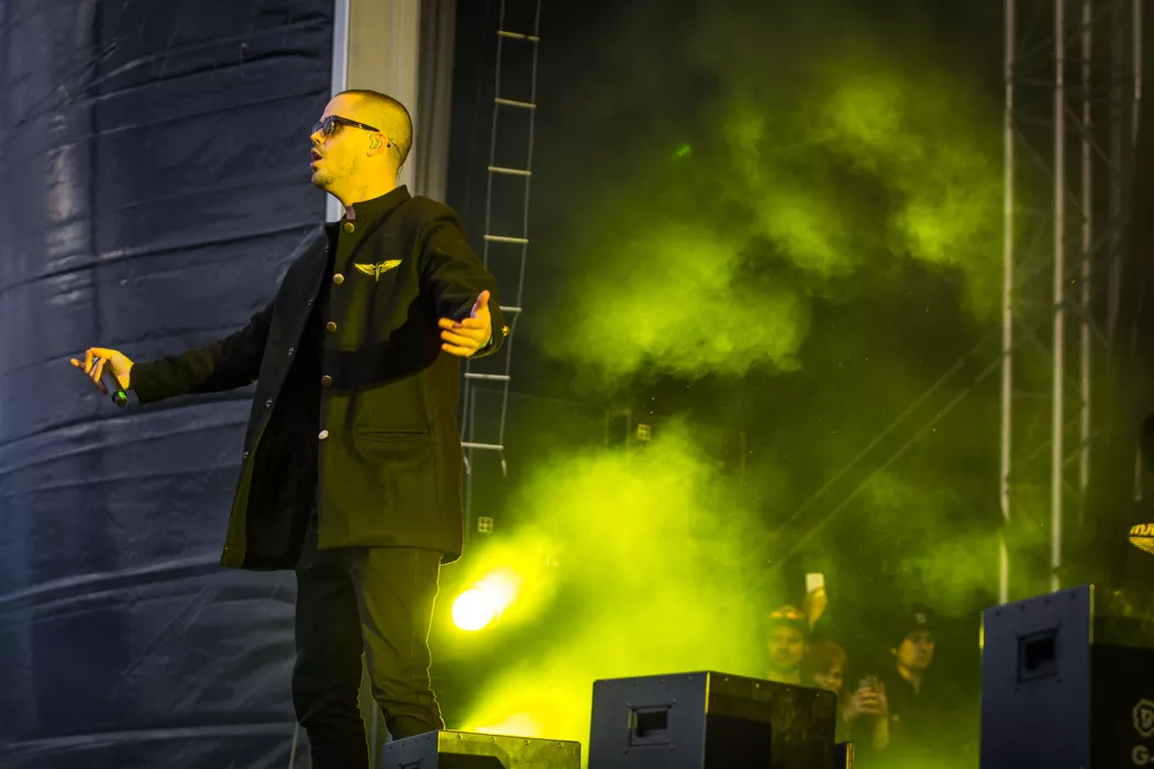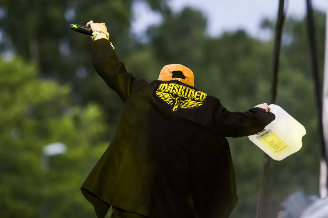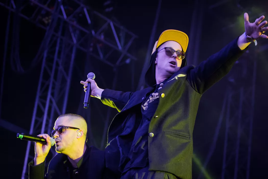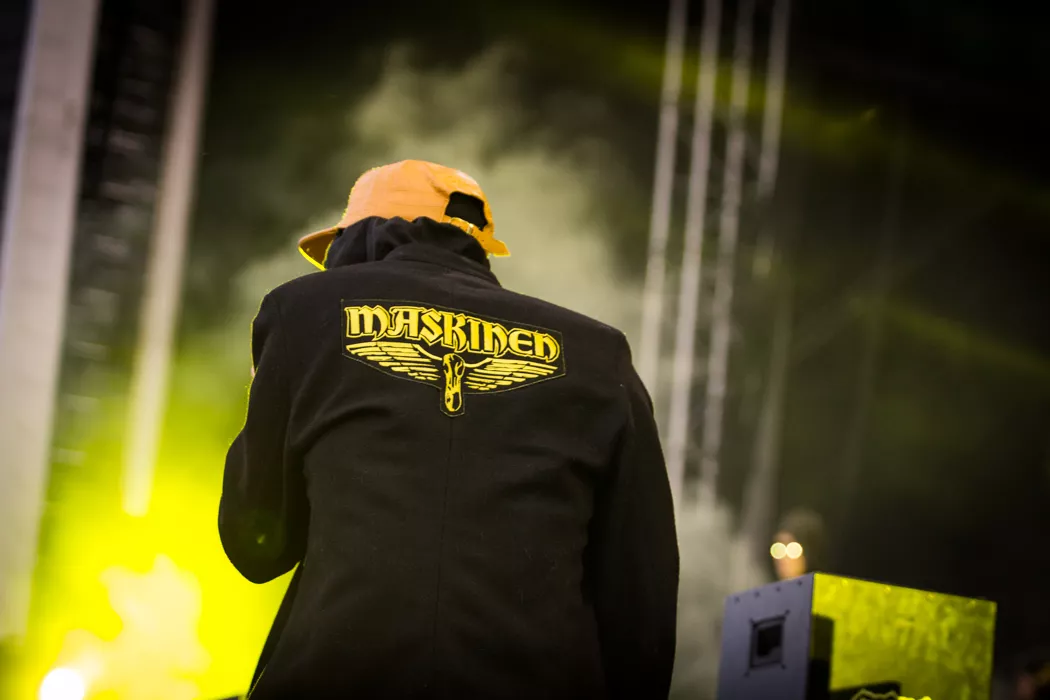 För ett år sedan stod Frej Larsson i publiken och såg Kanye West uppträda. Ikväll står han återigen tillsammans med Herbert "Afasi" Munkhammar på scen och utgör ena halvan i den välsmorda duon Maskinen. Likt de stora namn som tidigare har agerat huvudakter är duon tio minuter sena. Det är ett konstant