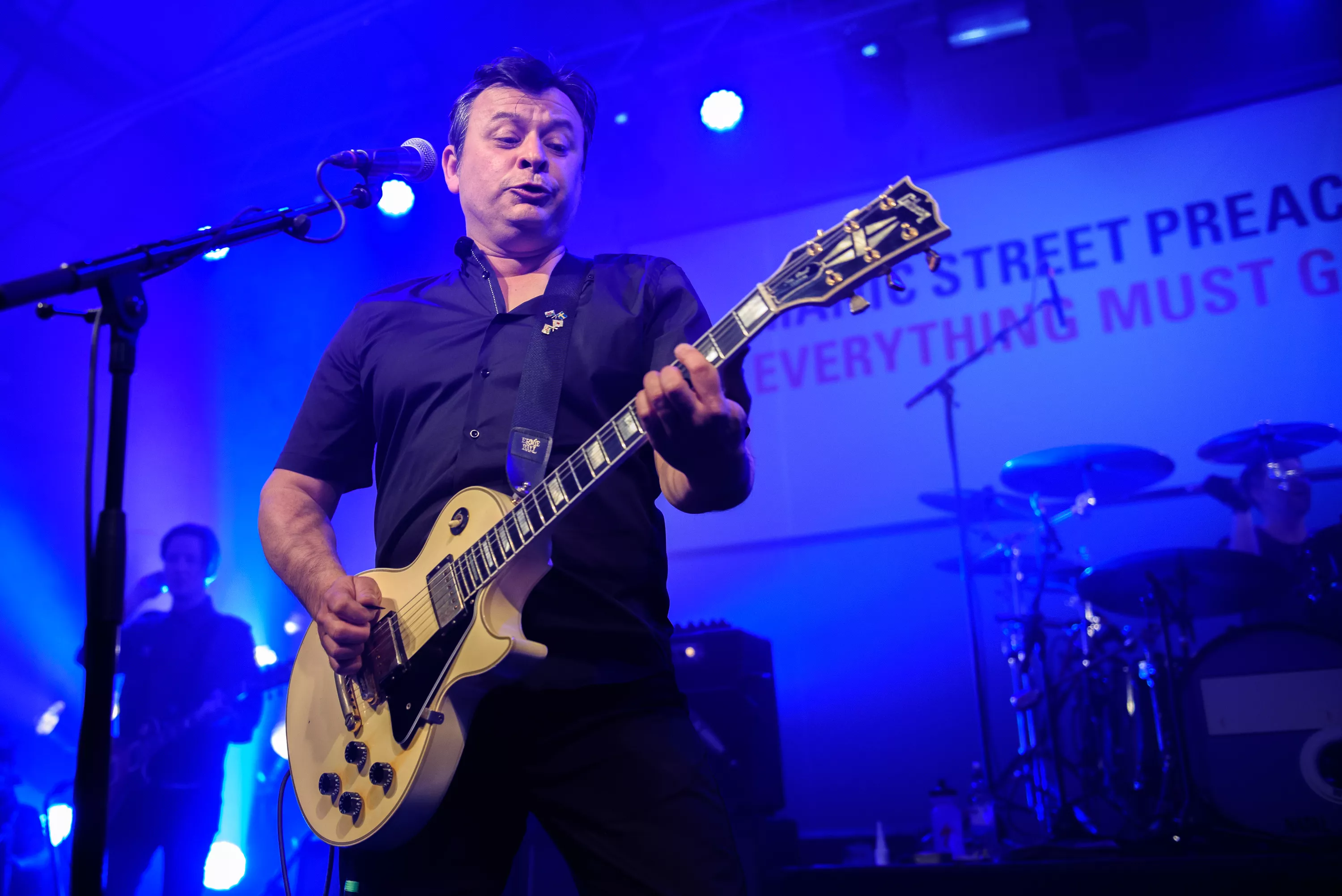 Nicky Wire äntrar scenen iförd guldkavaj, flärdfulla solglasögon och semi-passé knullrufsfrisyr. Bradfield bär stilig svart skjorta och pratar om Albert Camus. En gråsprängd Sean Moore bankar skinn som aldrig förr. Åldrande rockstjärnor som accepterar sin ålder men inte känner sig gamla. Ungefär som