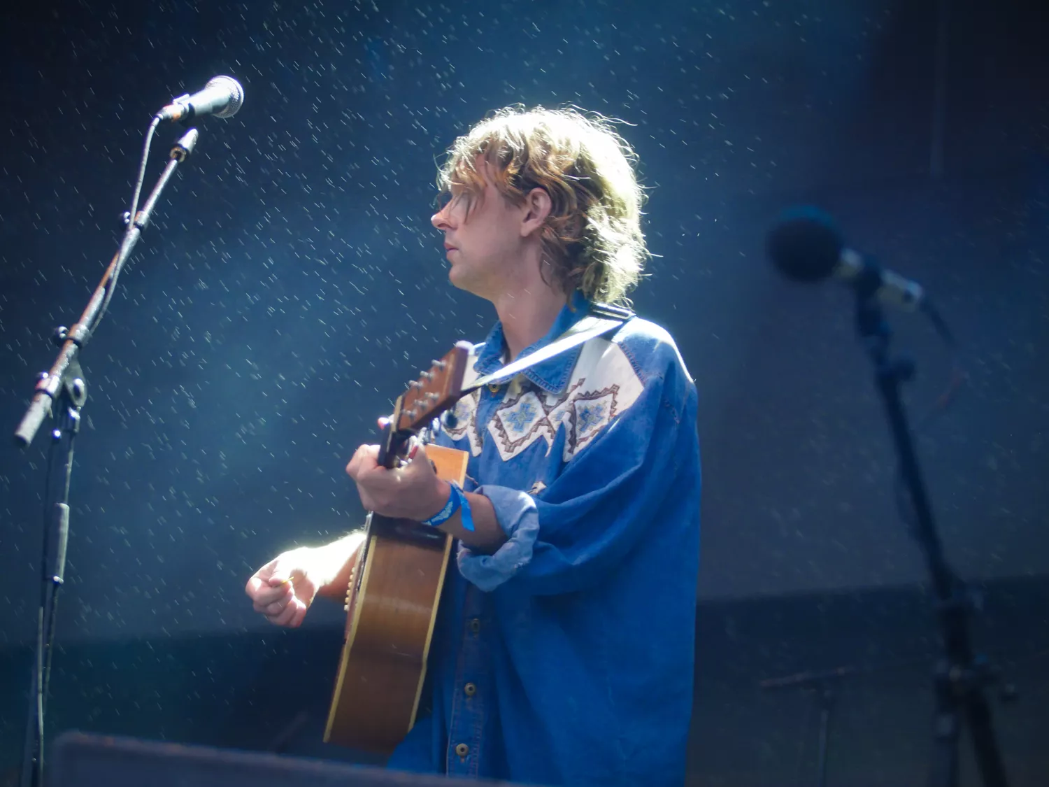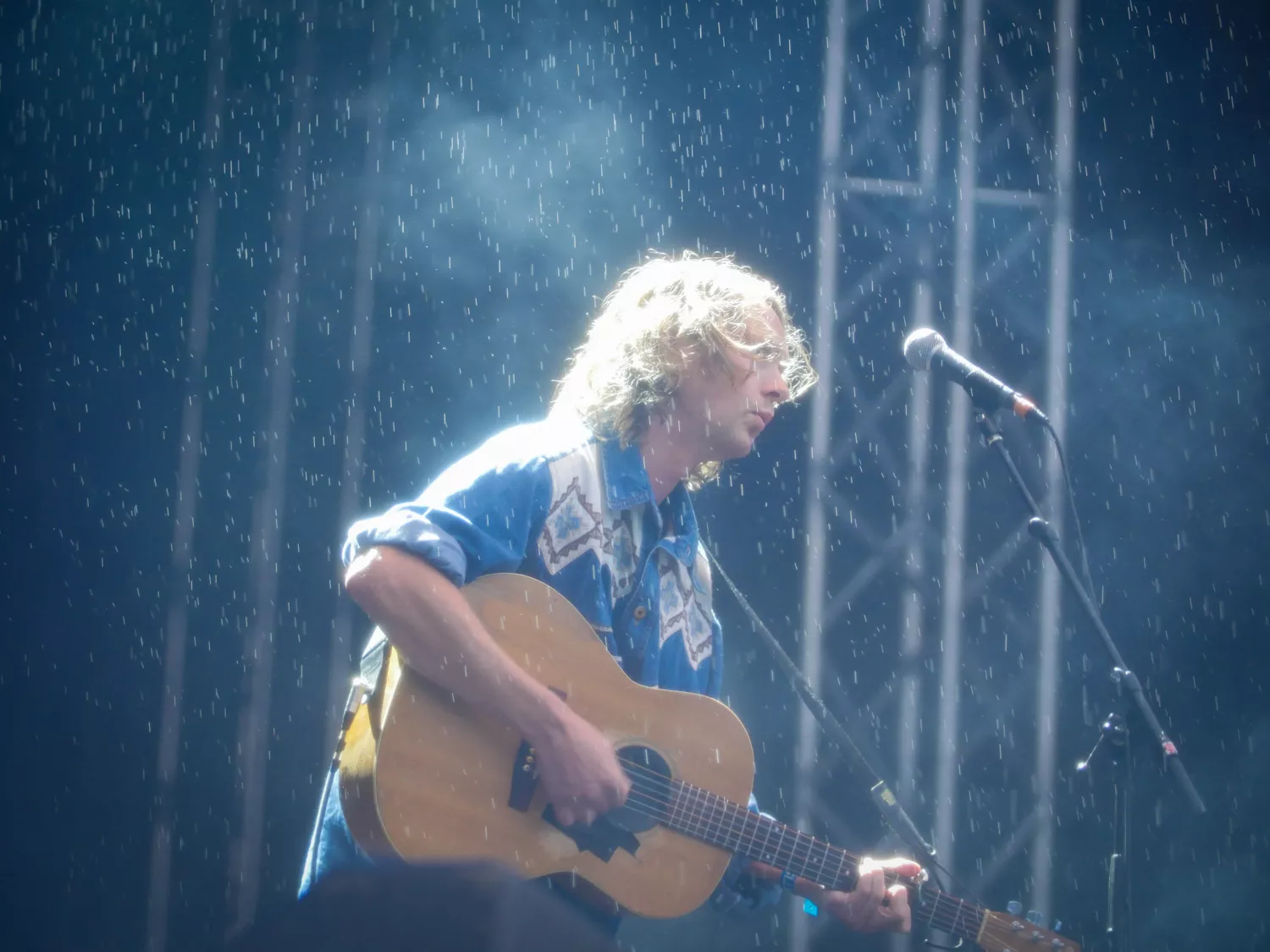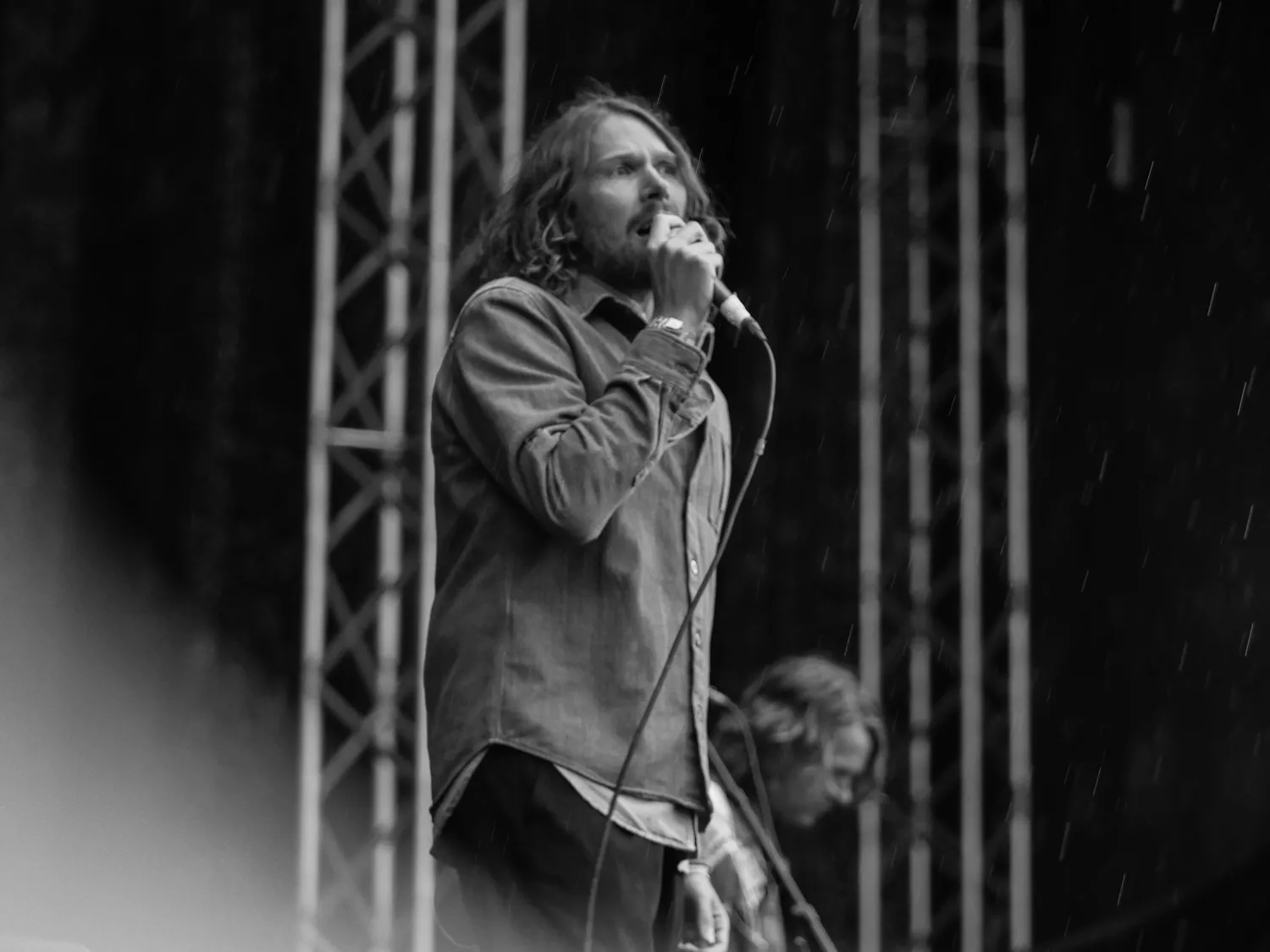 ”The Big Sleep-väder”, säger Peder Stenberg och tittar upp mot himlen. Han refererar till omslaget på bandets senaste albumsläpp. Sedan börjar det hällregna, alltså verkligen pissa ned. Men det gör liksom ingenting. Och när de spelar