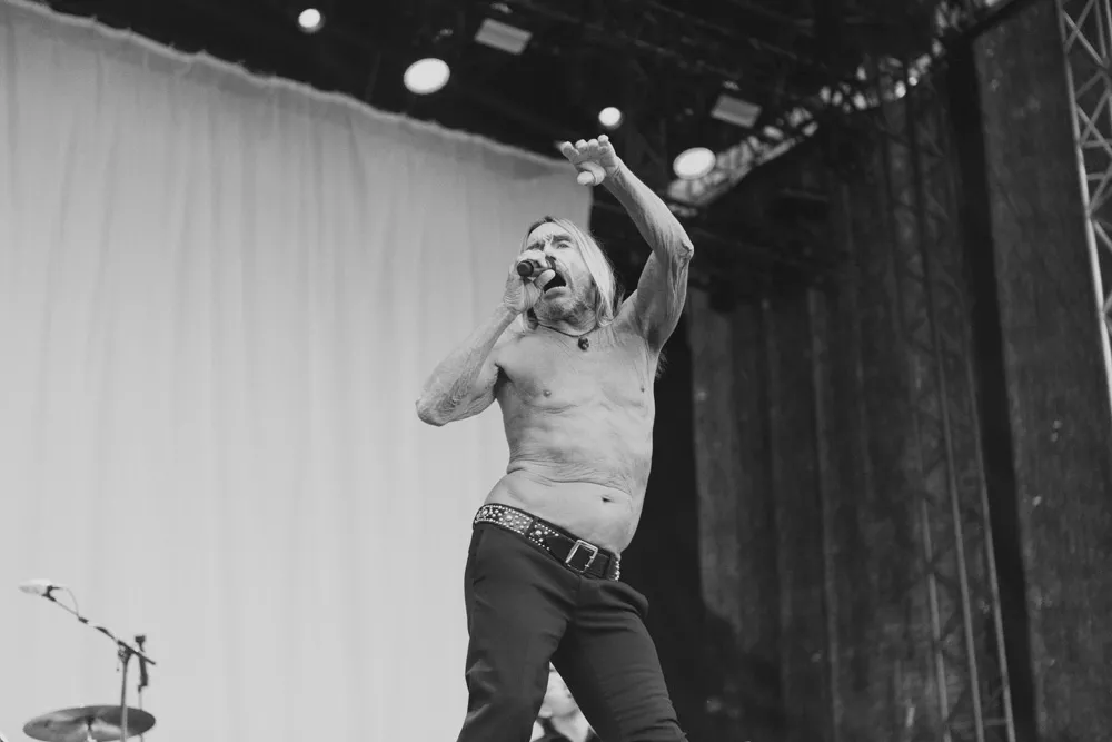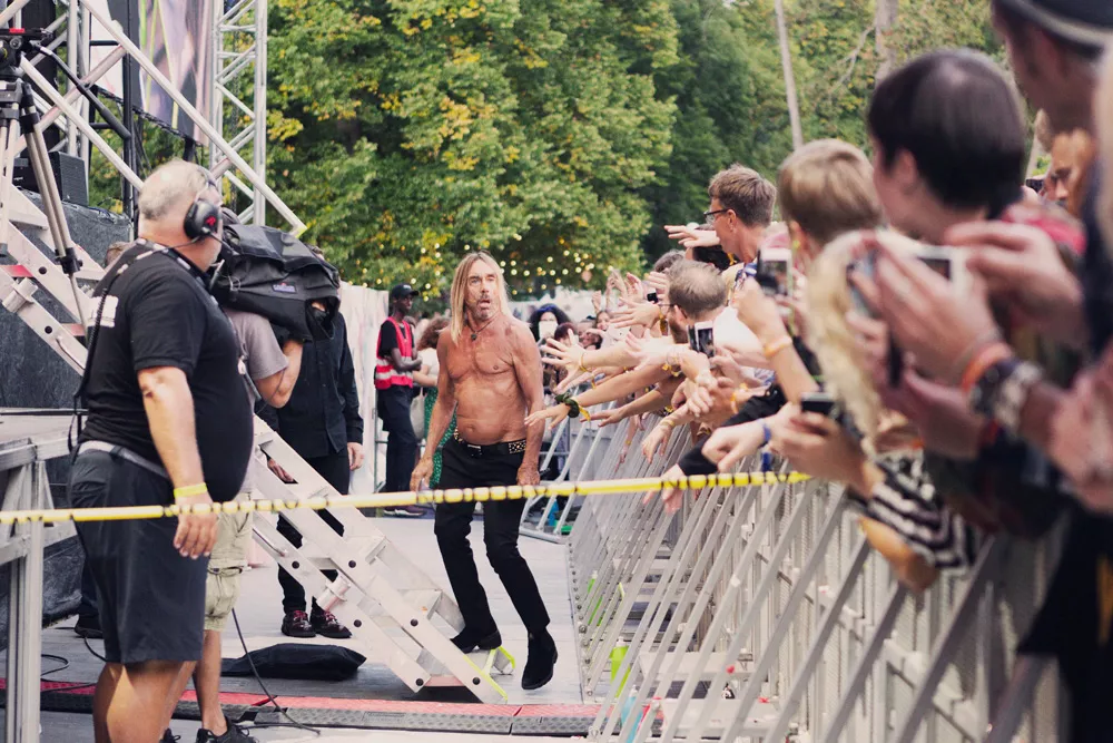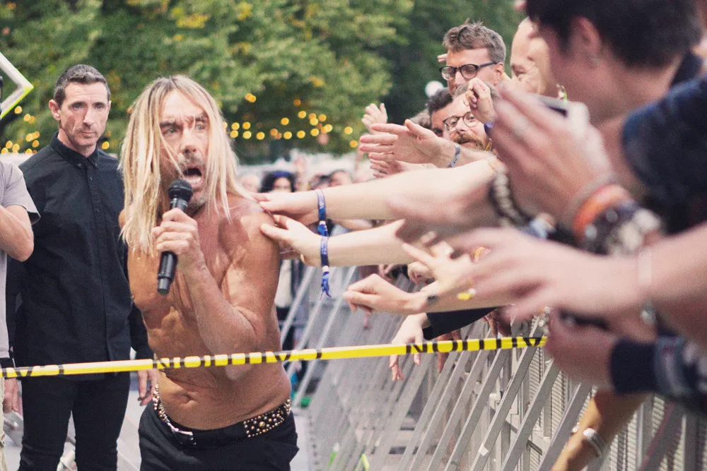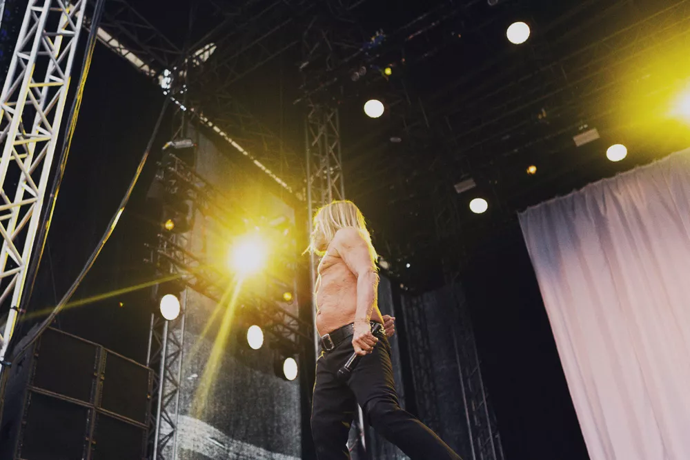 Världens äldste slyngelrockare – medicinsk ålder, 71; mental ålder, 18 – har föga överraskande inte brytt sig om att dra på sig någonting på överkroppen att kunna slänga av ens för effektens skull. De trasorna hade ju ändå