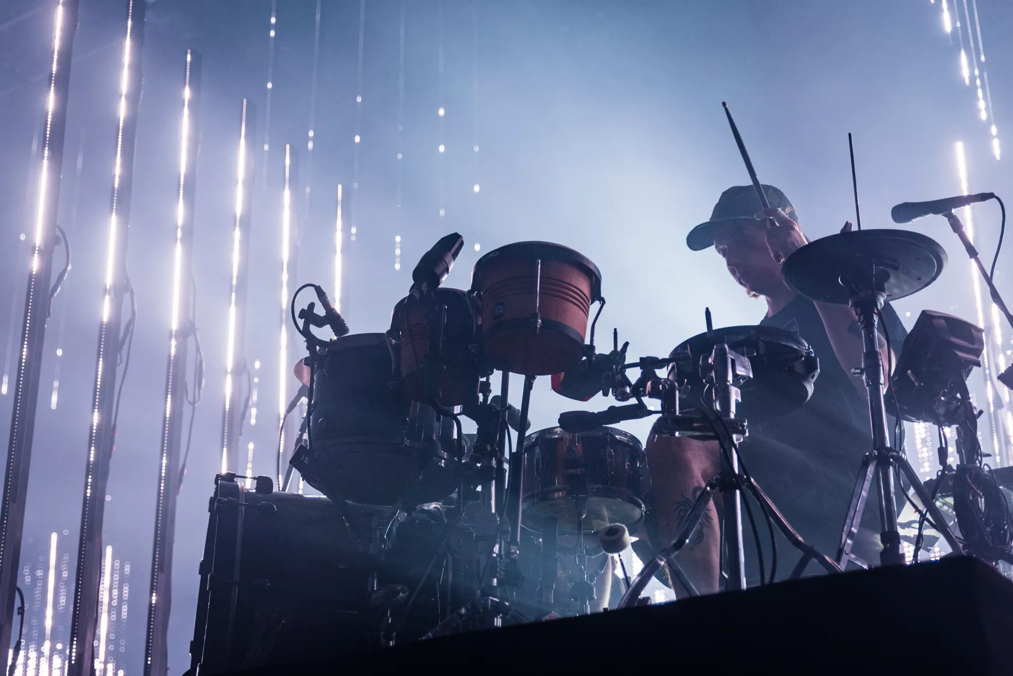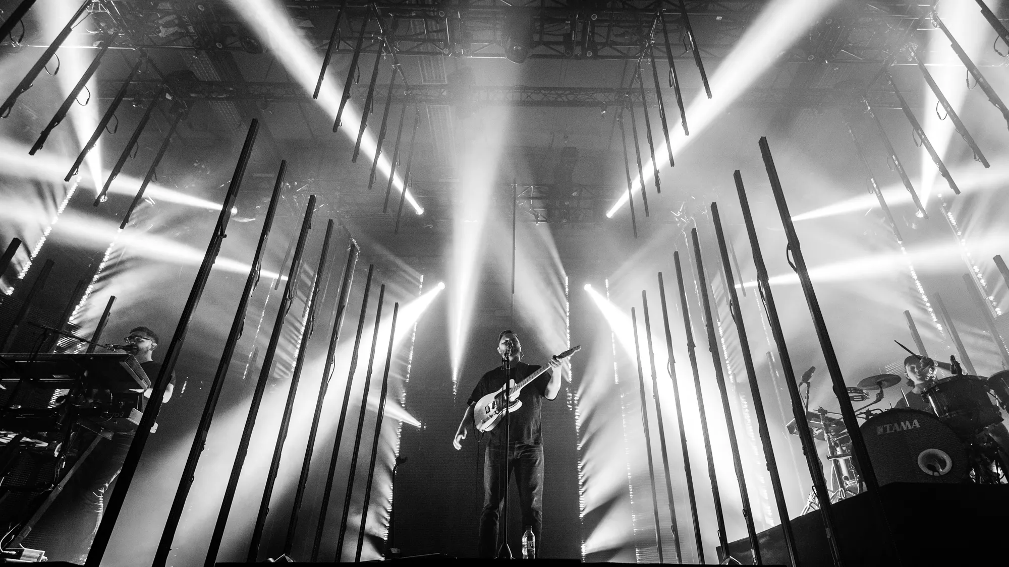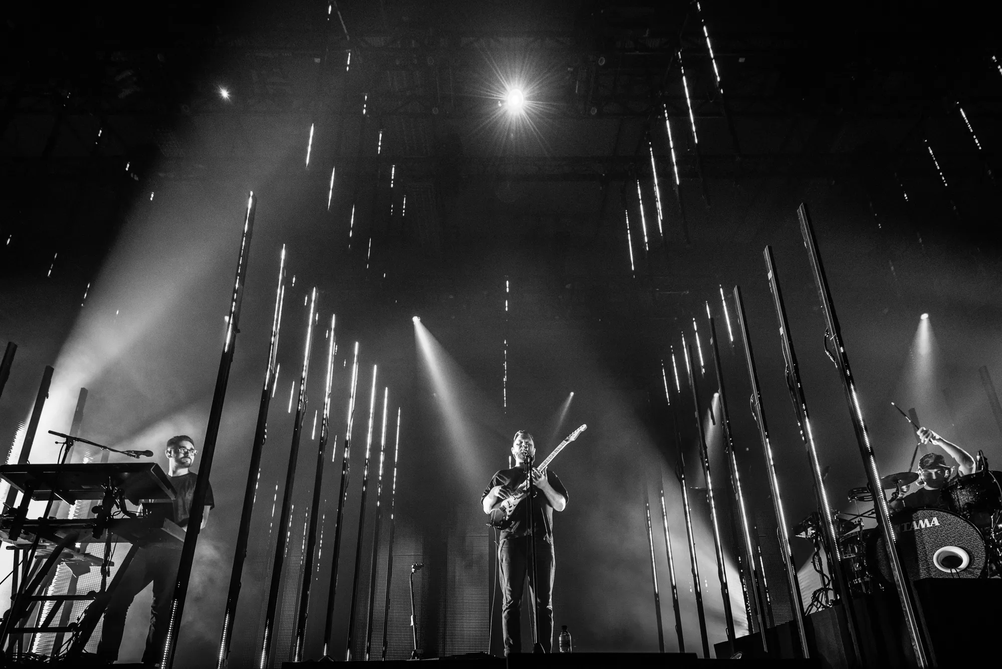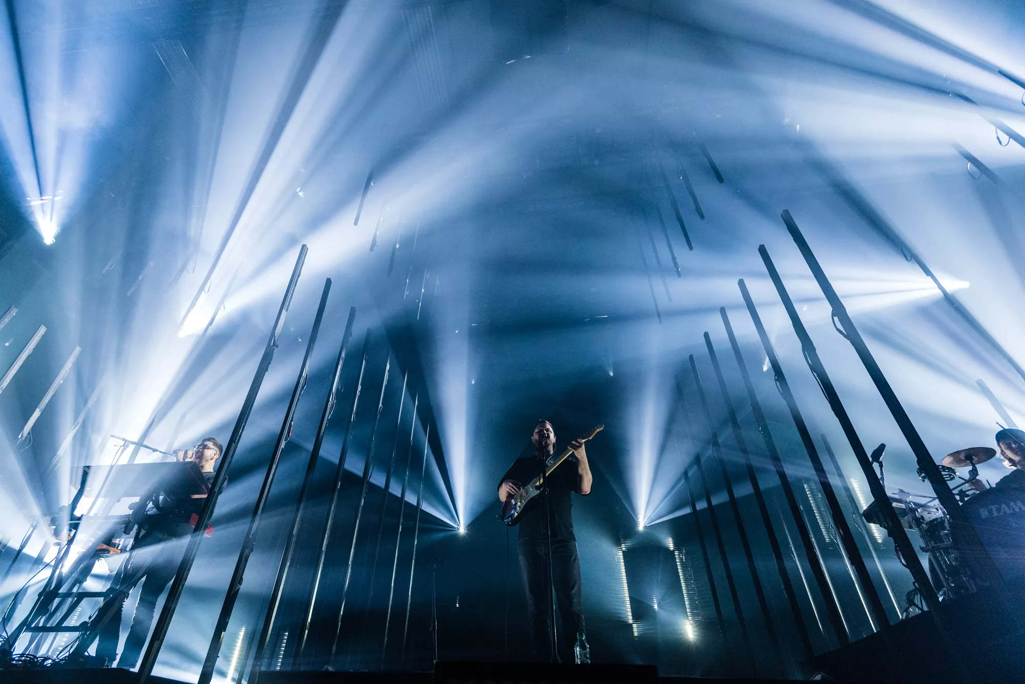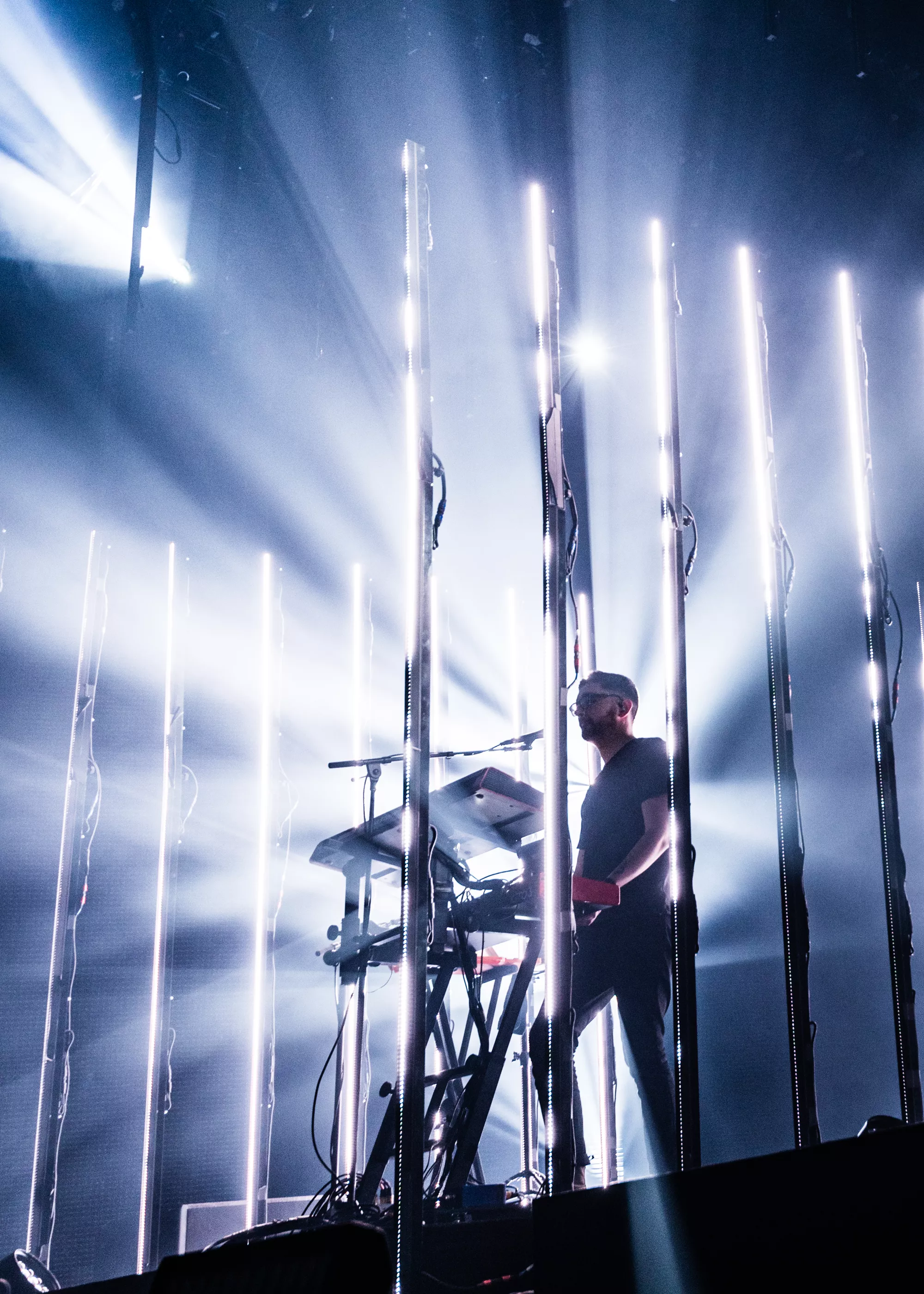 Egentligen är Alt-J en trio, men när de uppträder live har de med sig en fjärde och minst lika viktig medlem: ljusshowen. Leedsbandets konsert är nämligen det snyggaste och mest visuellt utmanande jag sett sedan Kraftwerks 3D-show i Düsseldorf för fem år