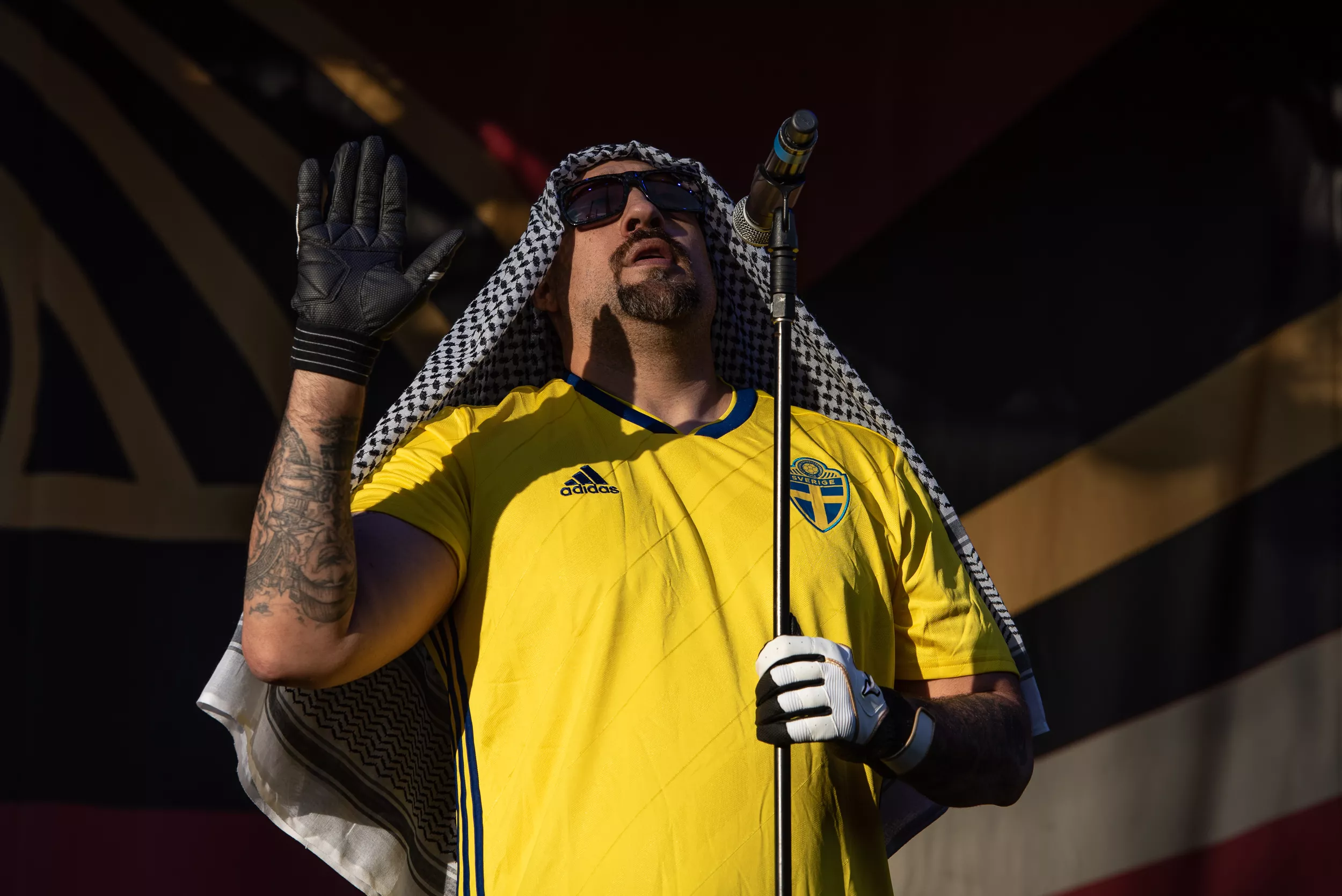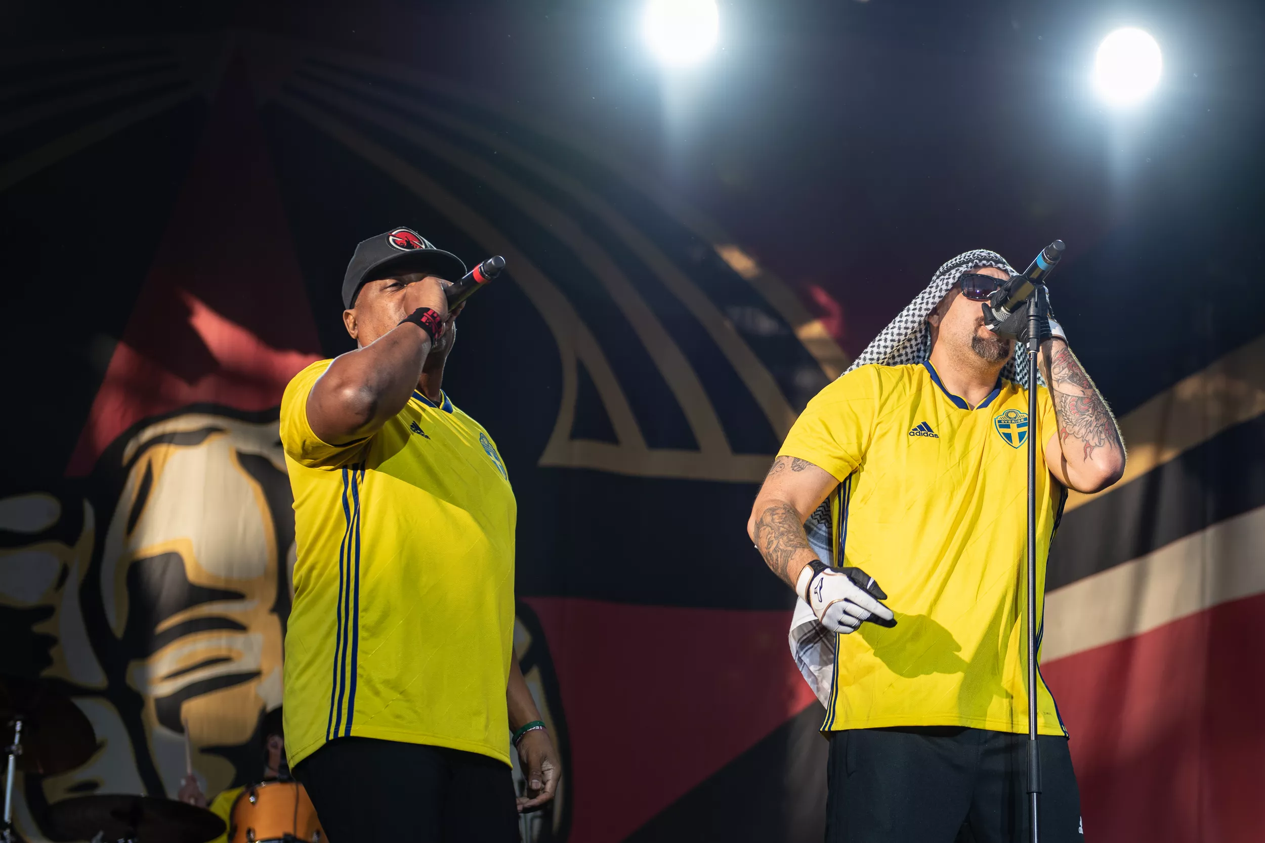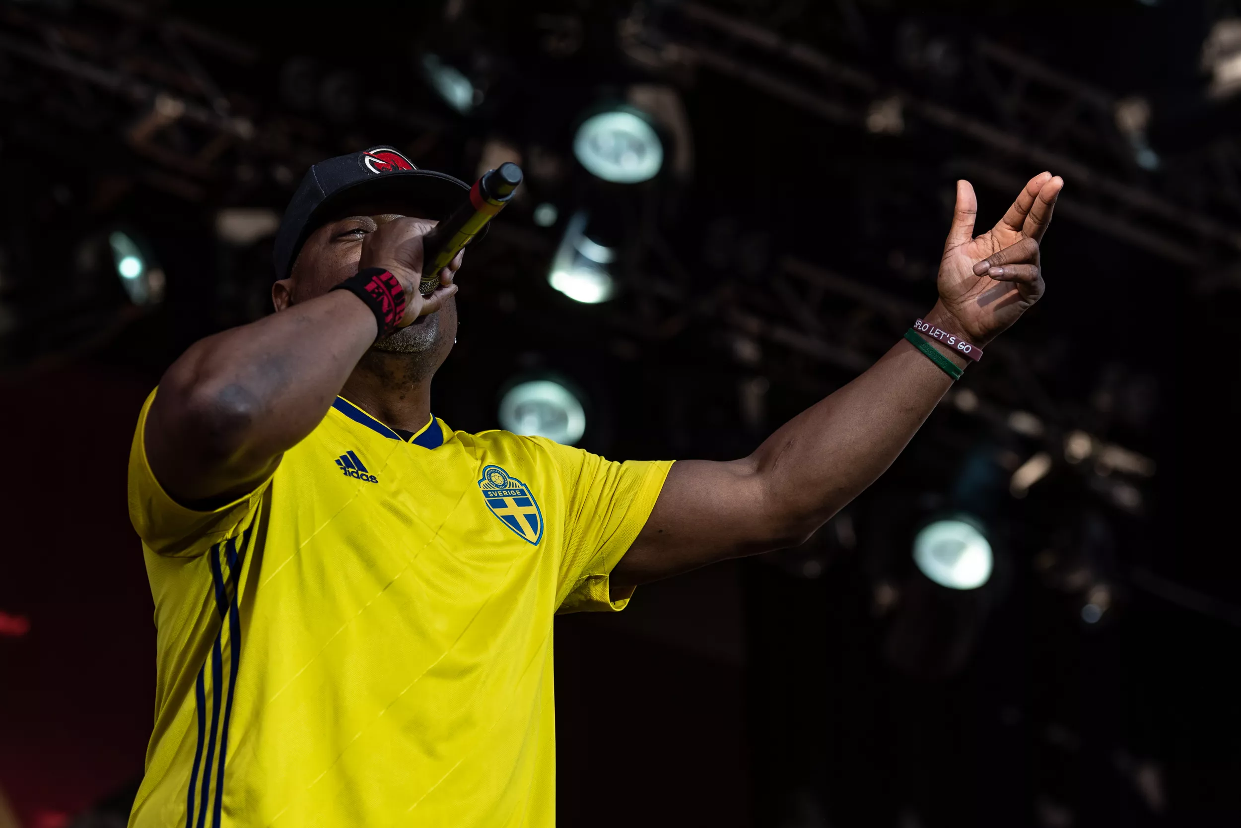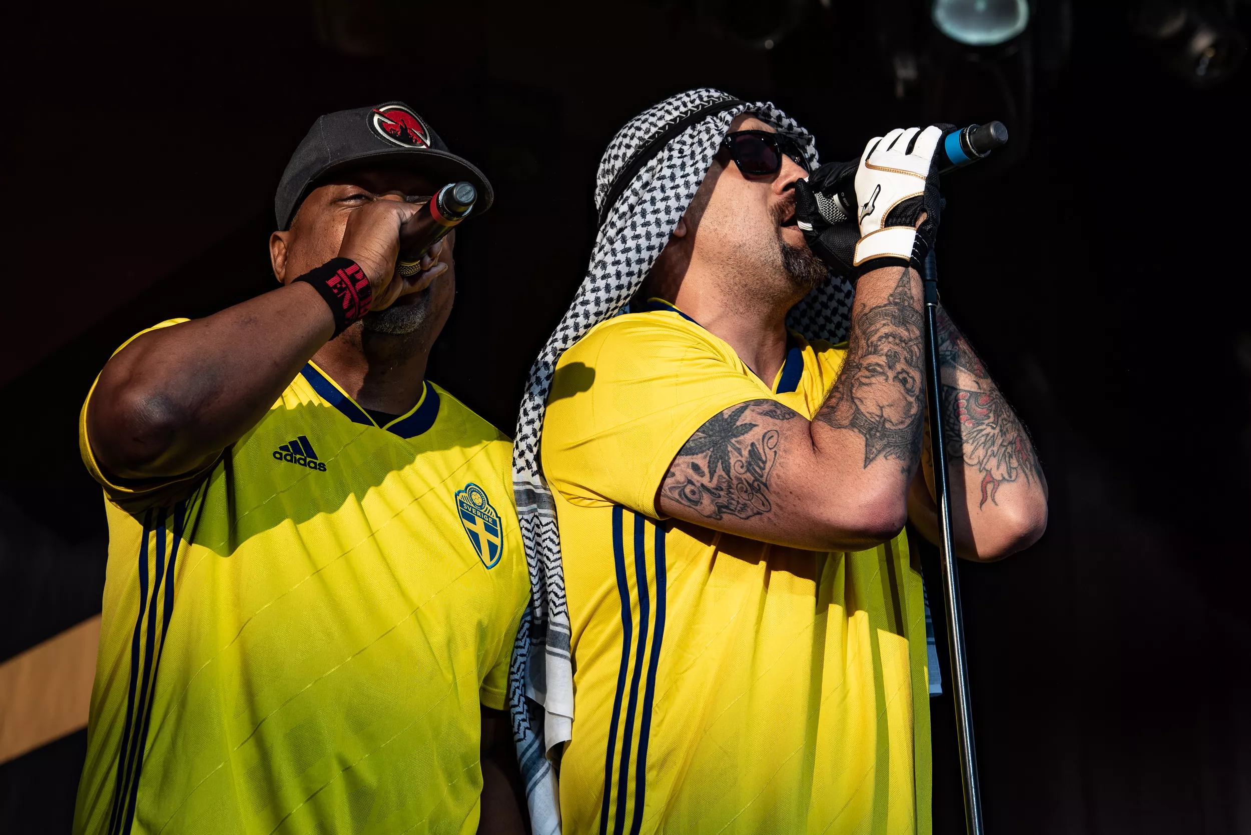 Inledningen är anslående. Alla sex i bandet kommer in, iklädda Sveriges gula landslagströjor. Ett oblygt publikfrieri, men det funkar hur bra som helst.