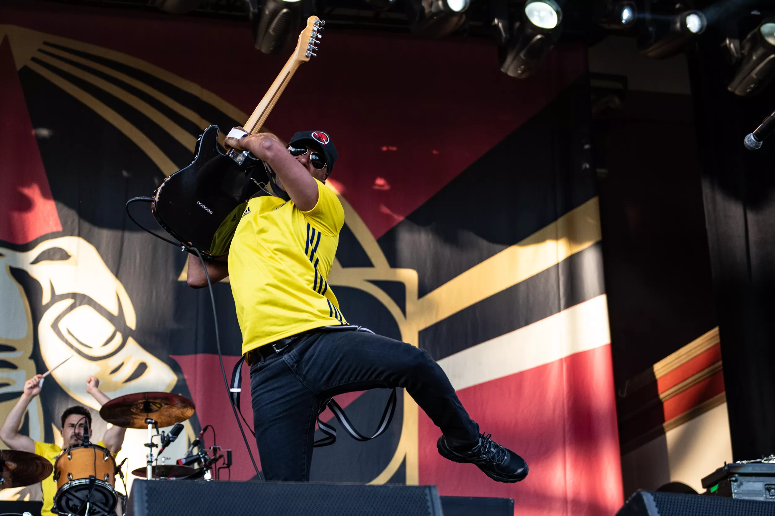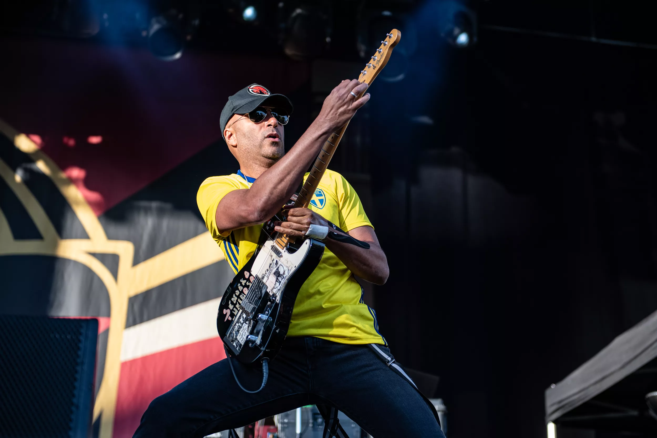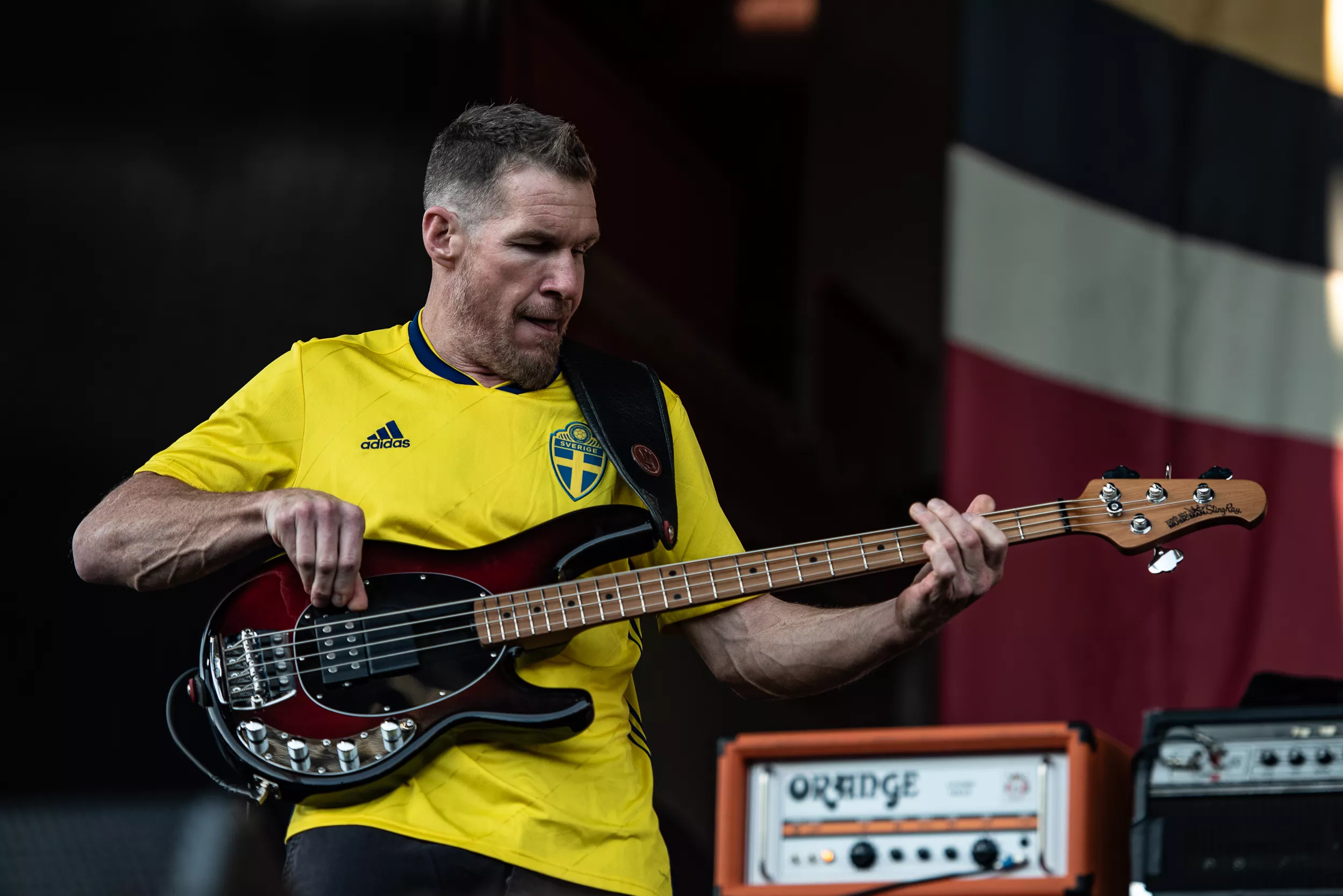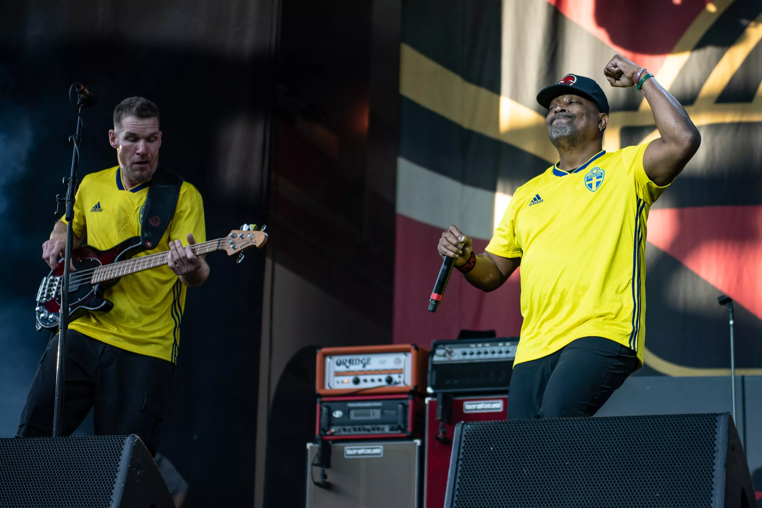 Inledningen är anslående. Alla sex i bandet kommer in, iklädda Sveriges gula landslagströjor. Ett oblygt publikfrieri, men det funkar hur bra som helst.