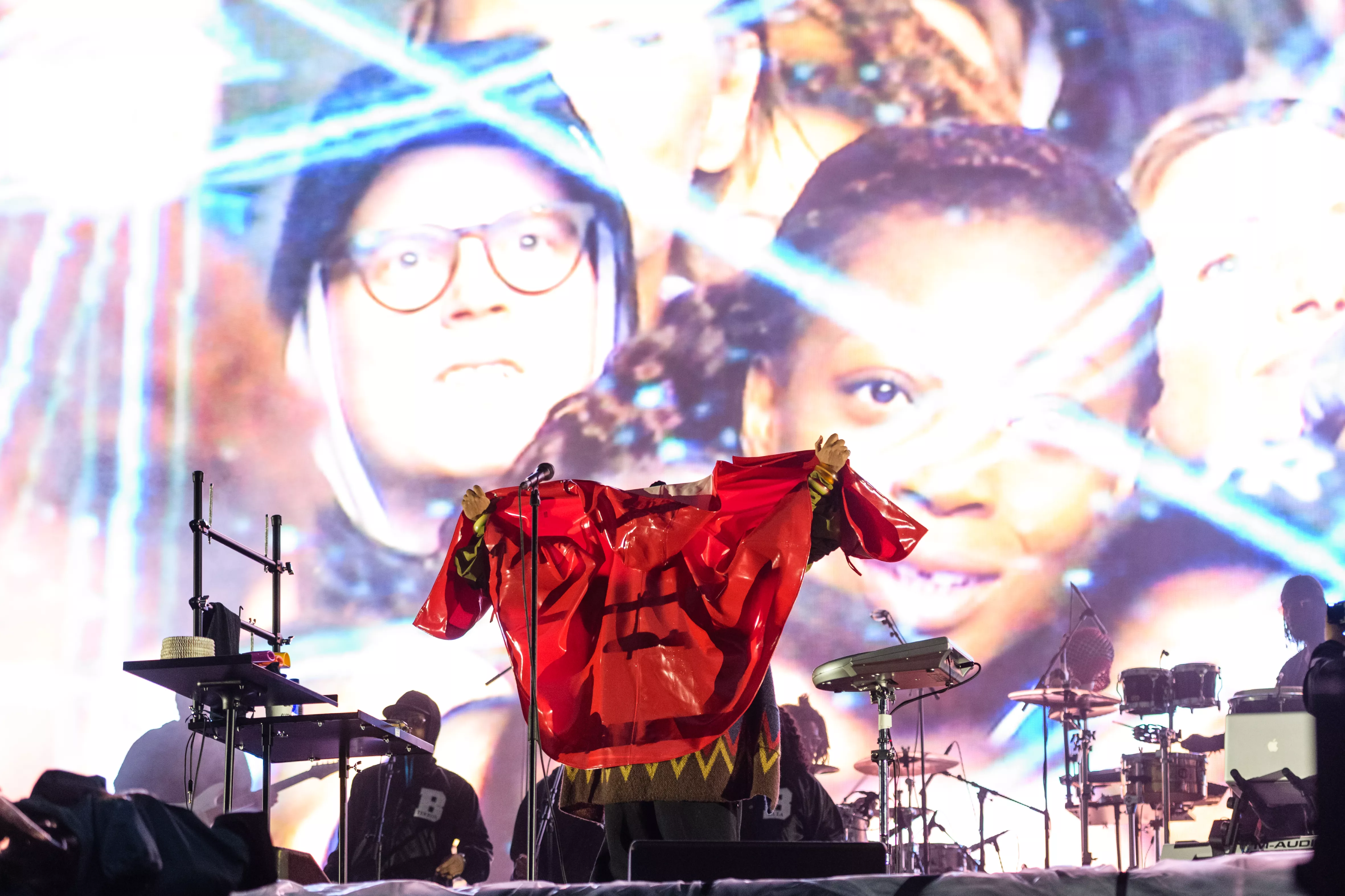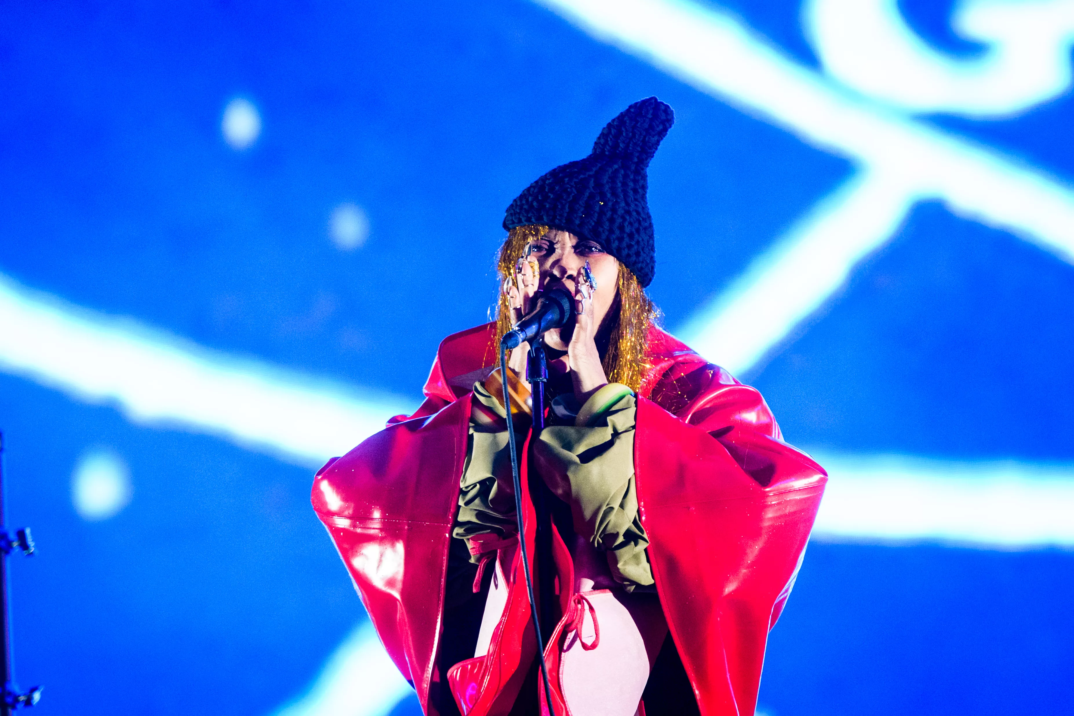 35 minuters väntan kanske man hade stått ut med i solnedgången en ljummen sommarkväll, men när regnet öser ner över Flamingoscenen är tålamodet högst begränsat! Kanske den här försenade starten gör