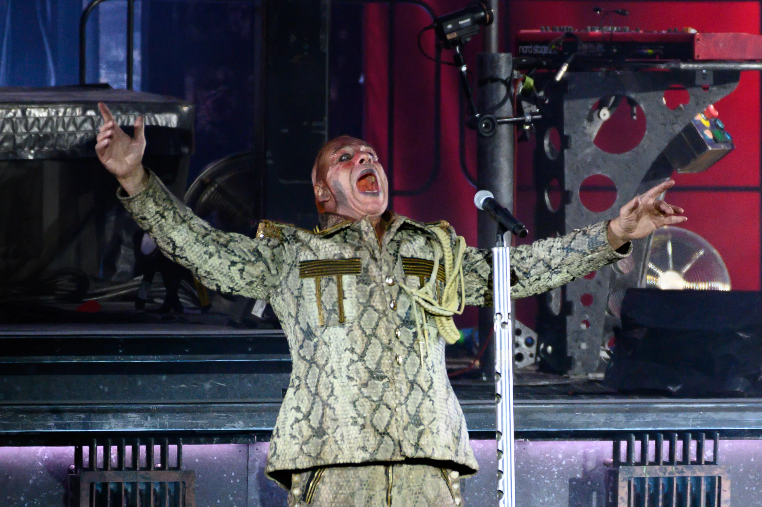 Det finns mycket som är mäktigt med Rammstein. De ser lite farliga ut, de sjunger på robust tyska, och på Stadion har de en av de största scener jag sett – det ser ut som ett ondskefullt UFO har landat.