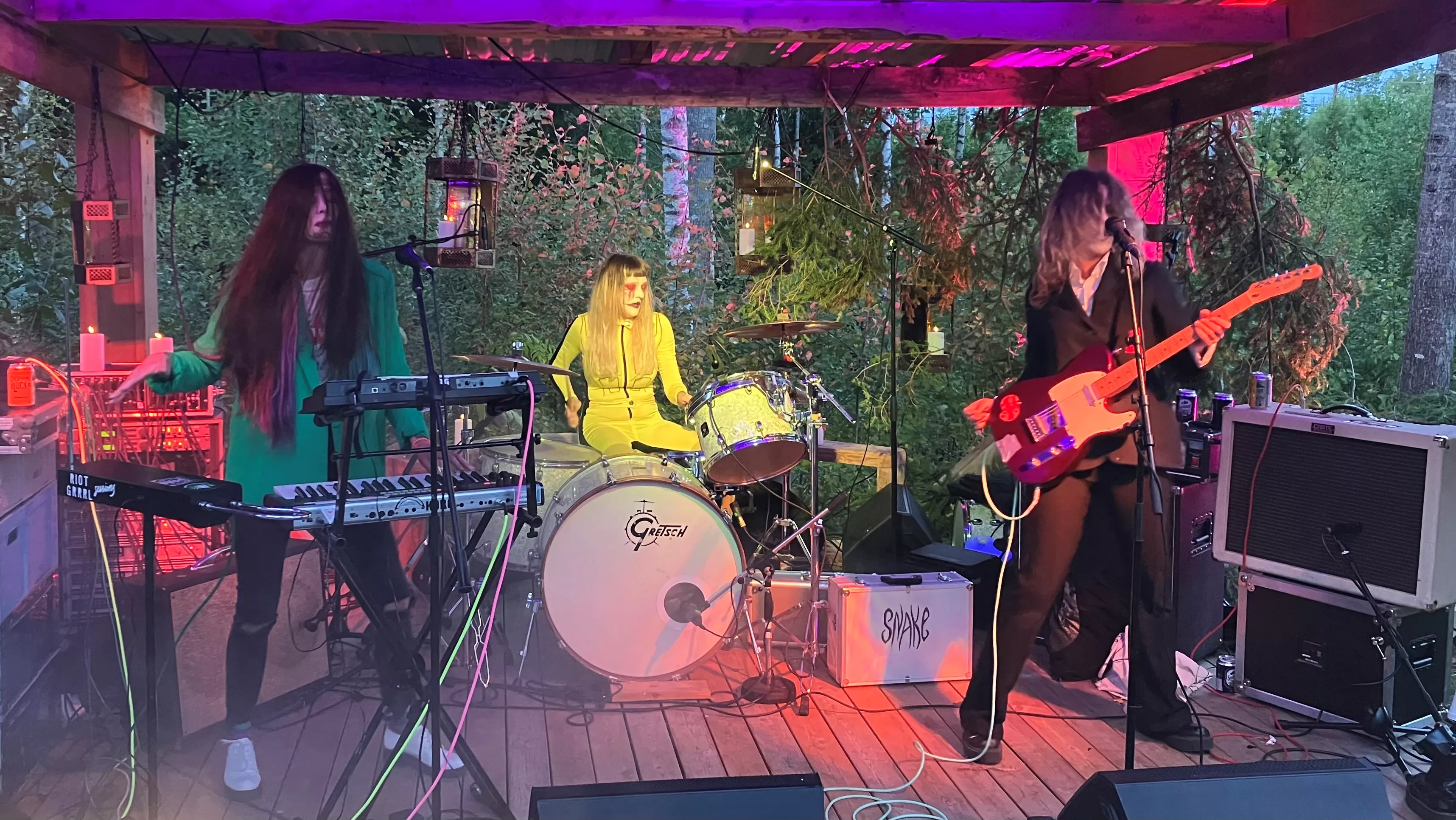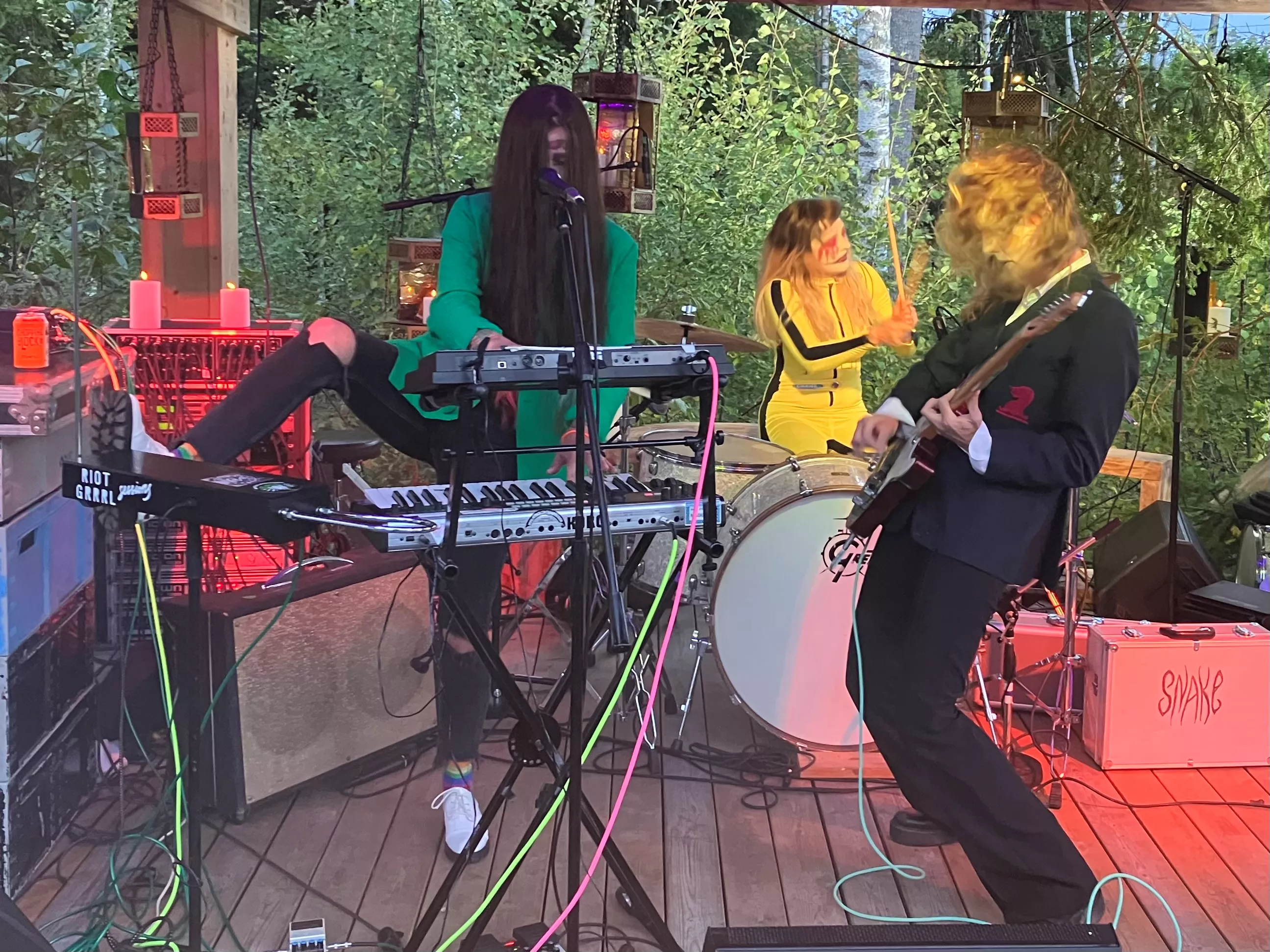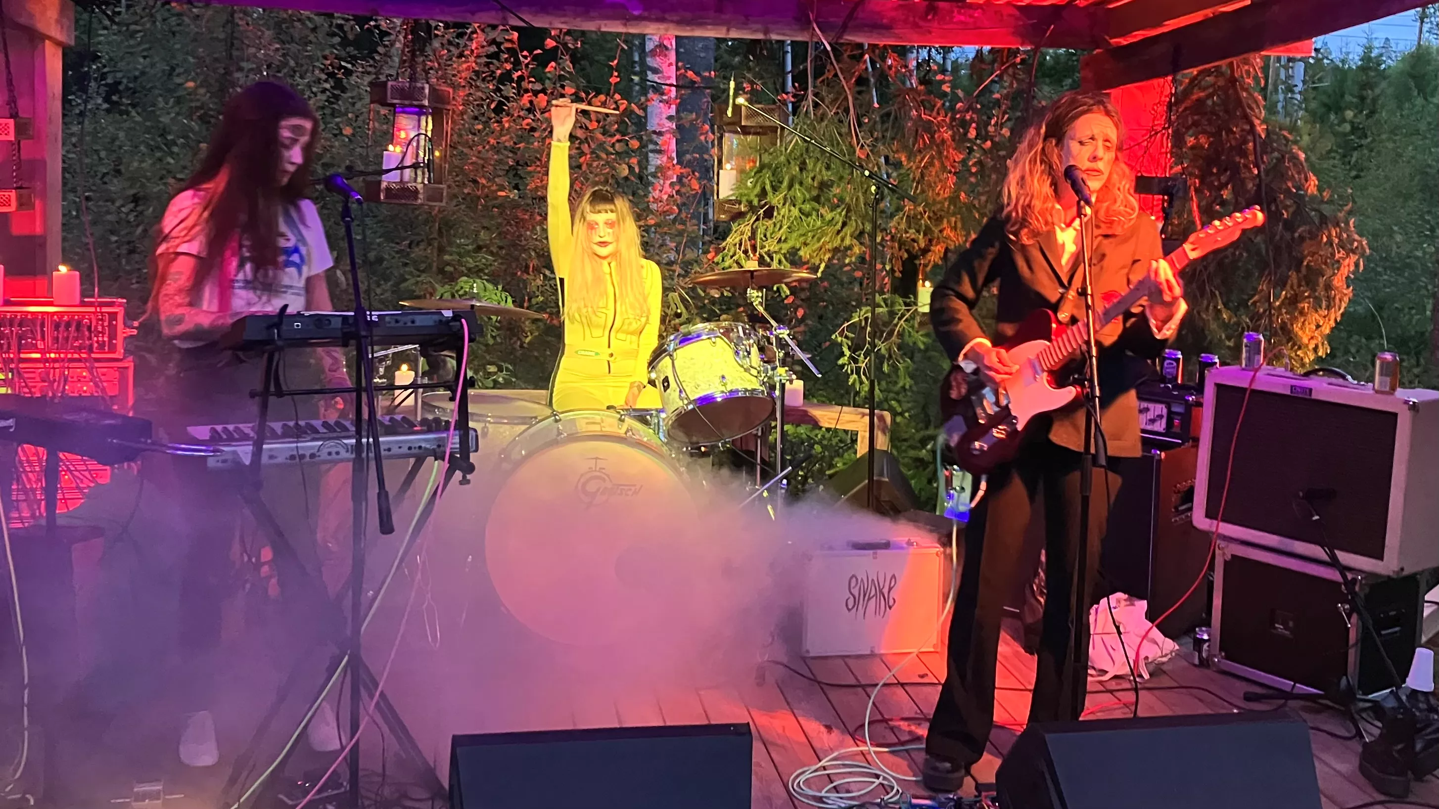 Frankie lyfter upp foten mot thereminen. Det som nyss lät som en stavnings- och talövning blir till verklighet när Snake intar lilla scenen på Woodstockebodafestivalen.