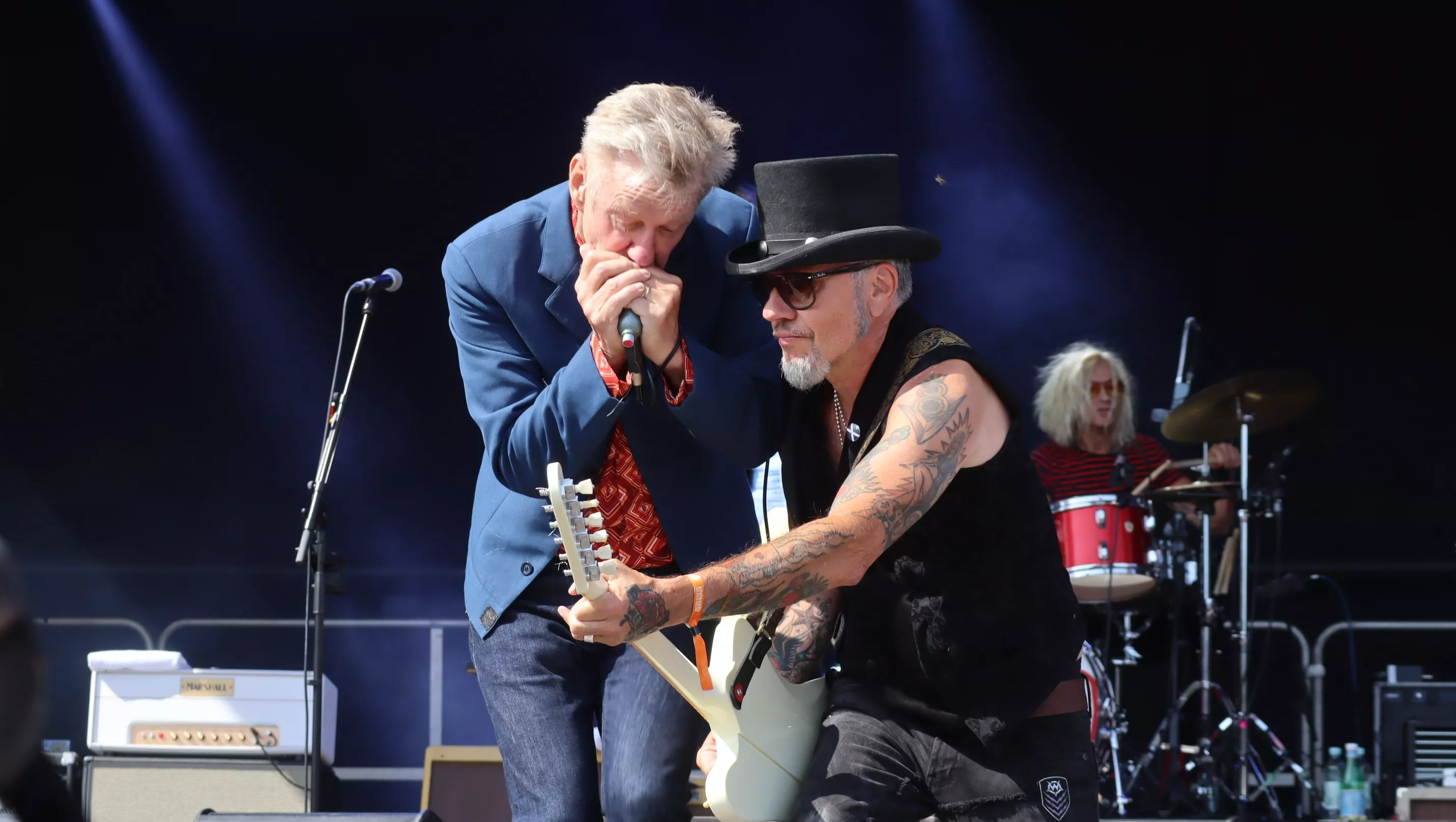 Den tredje och sista festivaldagen på Hasslö inleds och avslutas i Skånerockens tecken. Senare ikväll kommer Joddla Med Siv att göra comeback på stora scenen. Men först ut är det Wilmer X. I år har bandet nedgraderats till en matinéföreställning på lördagseftermiddagen. Vi snackar alltså en tidsslot