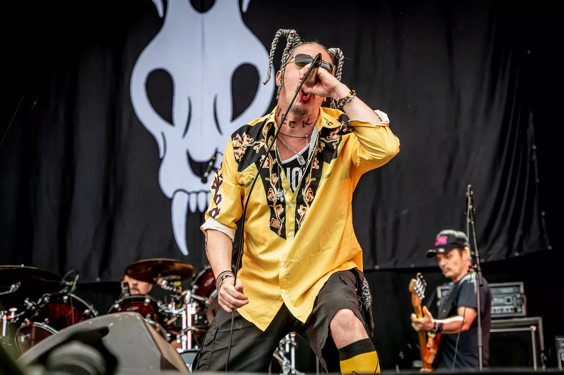 Mike Patton har ritat en stor kuk på ena armen, en pizzaslice på den andra, och på hans linne står det “I’m not gay but 20$ is 20$".