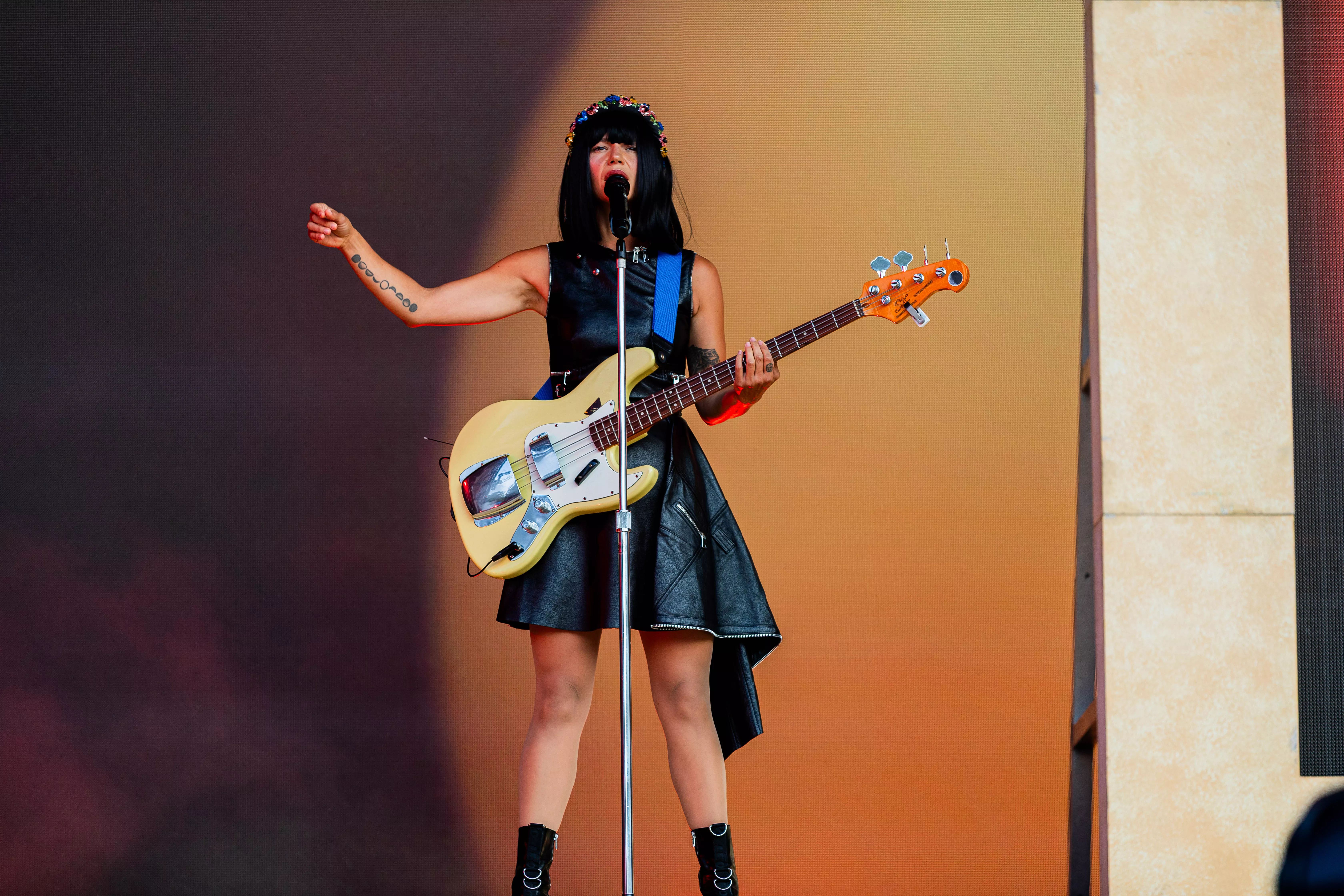 Det tunga regnet är ett minne blott när en ljummen, molnig och lätt rosa himmel agerar Slottsskogens backdrop. På scen står nu en av många trappor som artisterna valt att ha som scendekor – Khruangbins trappa är tveklöst bredast.