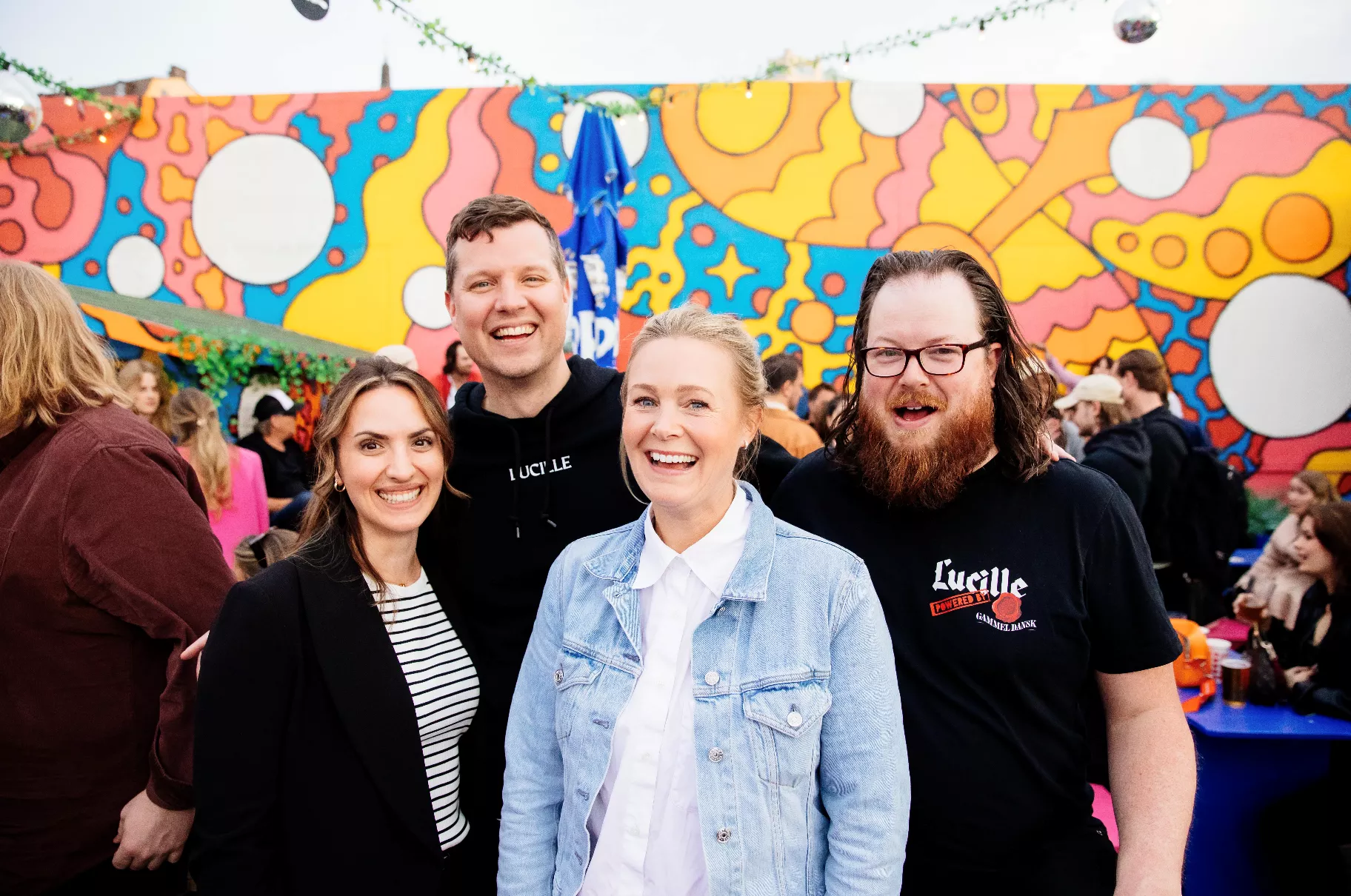 Runt omkring havet av soldränkta minglare hittas färgglada drinkstationer och ett litet bås där den intresserade ges möjlighet att kliva in bakom ett svart skynke för att möta kvällens stora snackis – Gammel Dansk-baren. Från skivspelarna hejar Karin Bernstrup på stämningen med sin unika kombination av pop och snabb elektronisk musik, något som gjort henne svår att missa för den som rört sig i Stockholms uteliv de senaste åren.